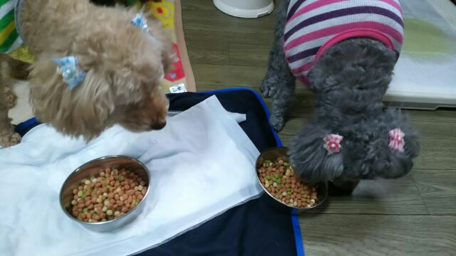 長期お預かりチワワバロンくん、トイプーゆずちゃんしっかり完食しました。