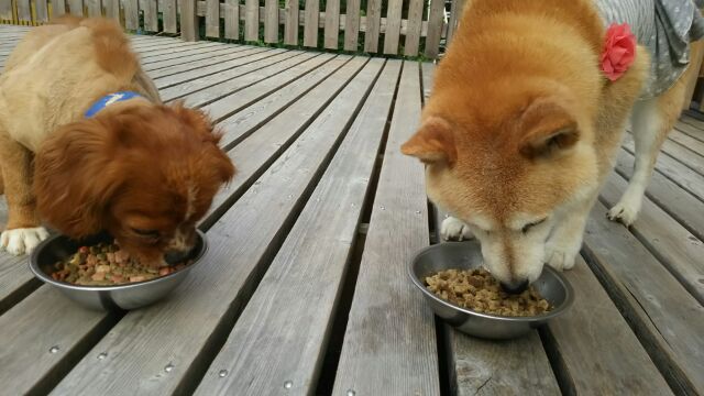 生涯お預かりコッカーチャッピーちゃん、柴犬さくらちゃんしっかり完食しました。
