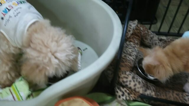 長期お預かりチワワバロンくん、トイプーゆずちゃんしっかり完食しました。