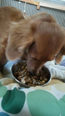 ゴールデンドゥードルルディーくんほぼ完食しました。