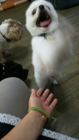 スタッフが離れると大騒ぎなのでサークルから出すと構って構ってと前足フリフリの尻尾フリフリです。 他のわんちゃんには見向きもしません。