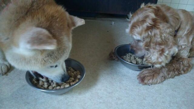 生涯お預かりコッカーチャッピーちゃん、柴犬凛ちゃんしっかり完食しました。