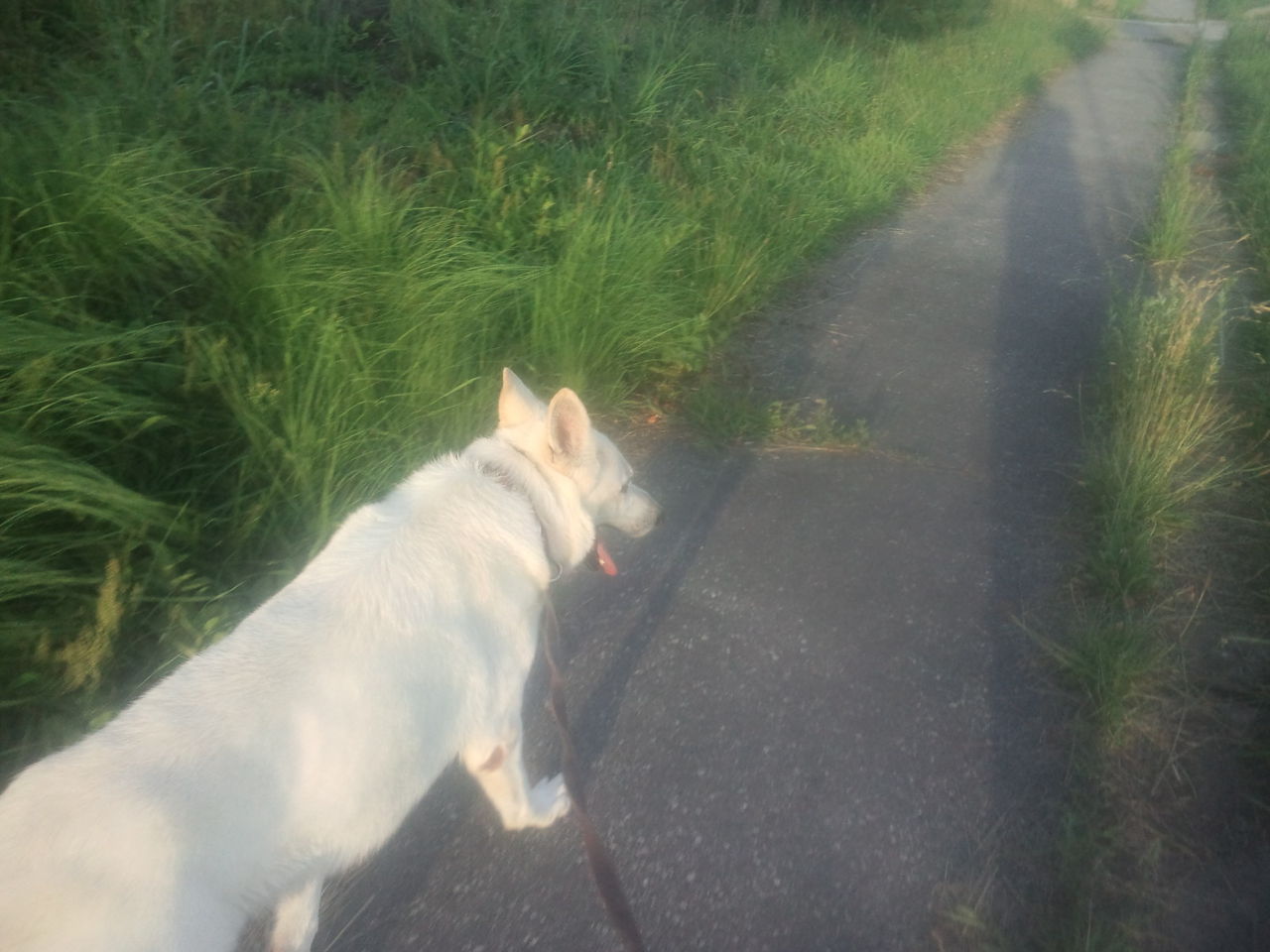 今日も涼しくなった夕方にお散歩。元気に歩くアーサー君でした。
