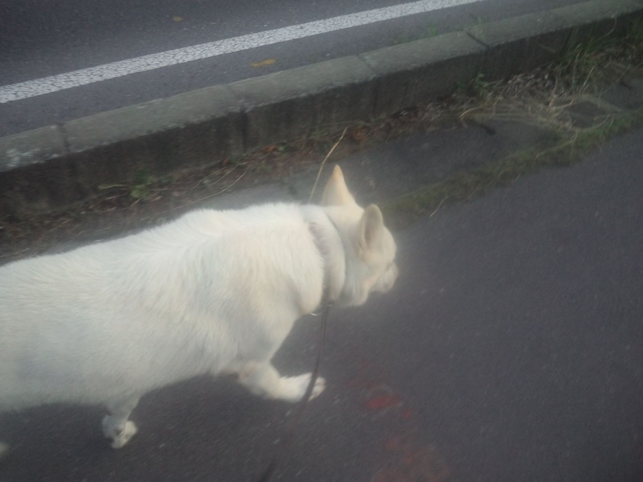 今日は暑かったので涼しくなってからのお散歩です。 草の匂いをたくさん嗅いでいたのでうんちをするかなと思ったのですが、しませんでした。おしっこはしました。