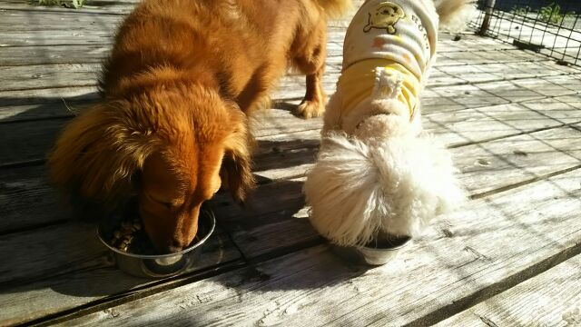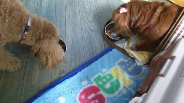 ダックスももちゃん、トイプーナナちゃんしっかり完食しました。