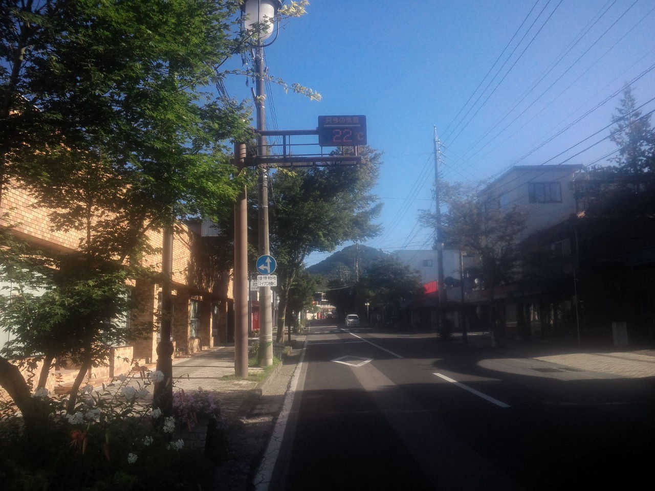 今朝の軽井沢の気温は22℃、天気は快晴です。
