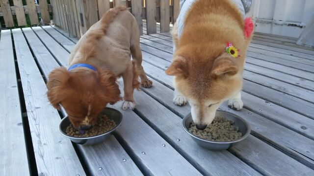 生涯お預かりコッカーチャッピーちゃん、柴犬凛ちゃんしっかり完食しました。