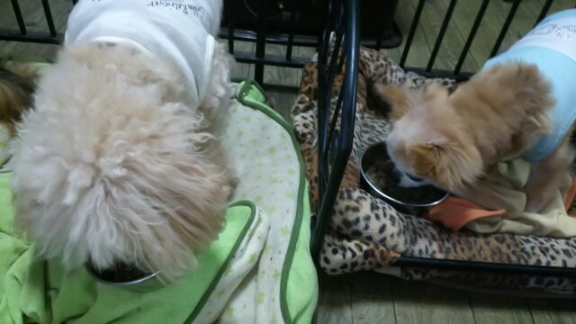 長期お預かりチワワバロンくん、トイプーゆずちゃんしっかり完食しました。