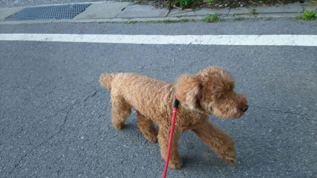 夕方になって涼しくなるまでお散歩を待ってました。夕方には流石に涼しくなったので、アーサー君と元気にお散歩してきました。
