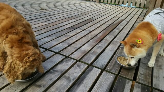 生涯お預かりコッカーチャッピーちゃん、柴犬凛ちゃんしっかり完食しました。