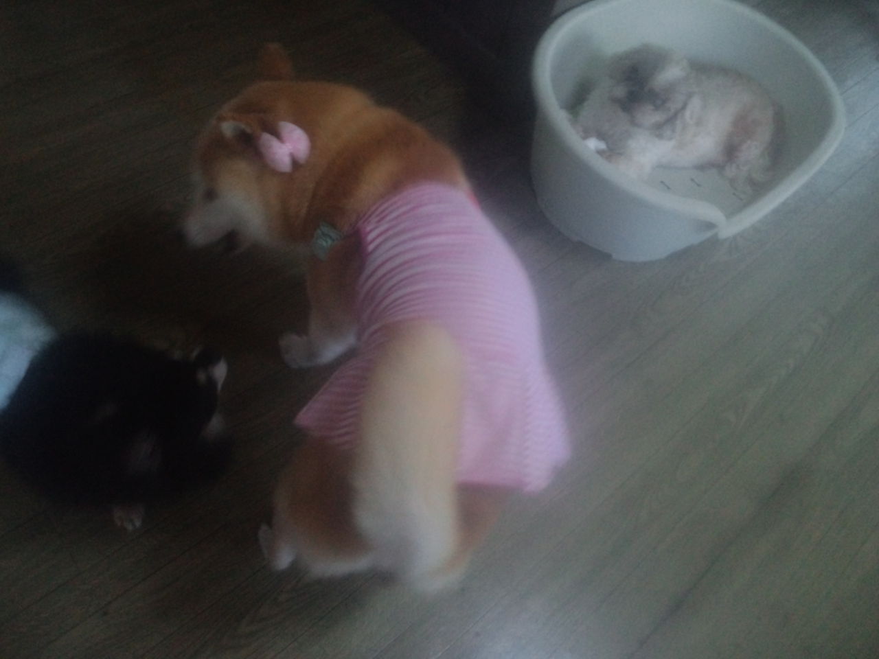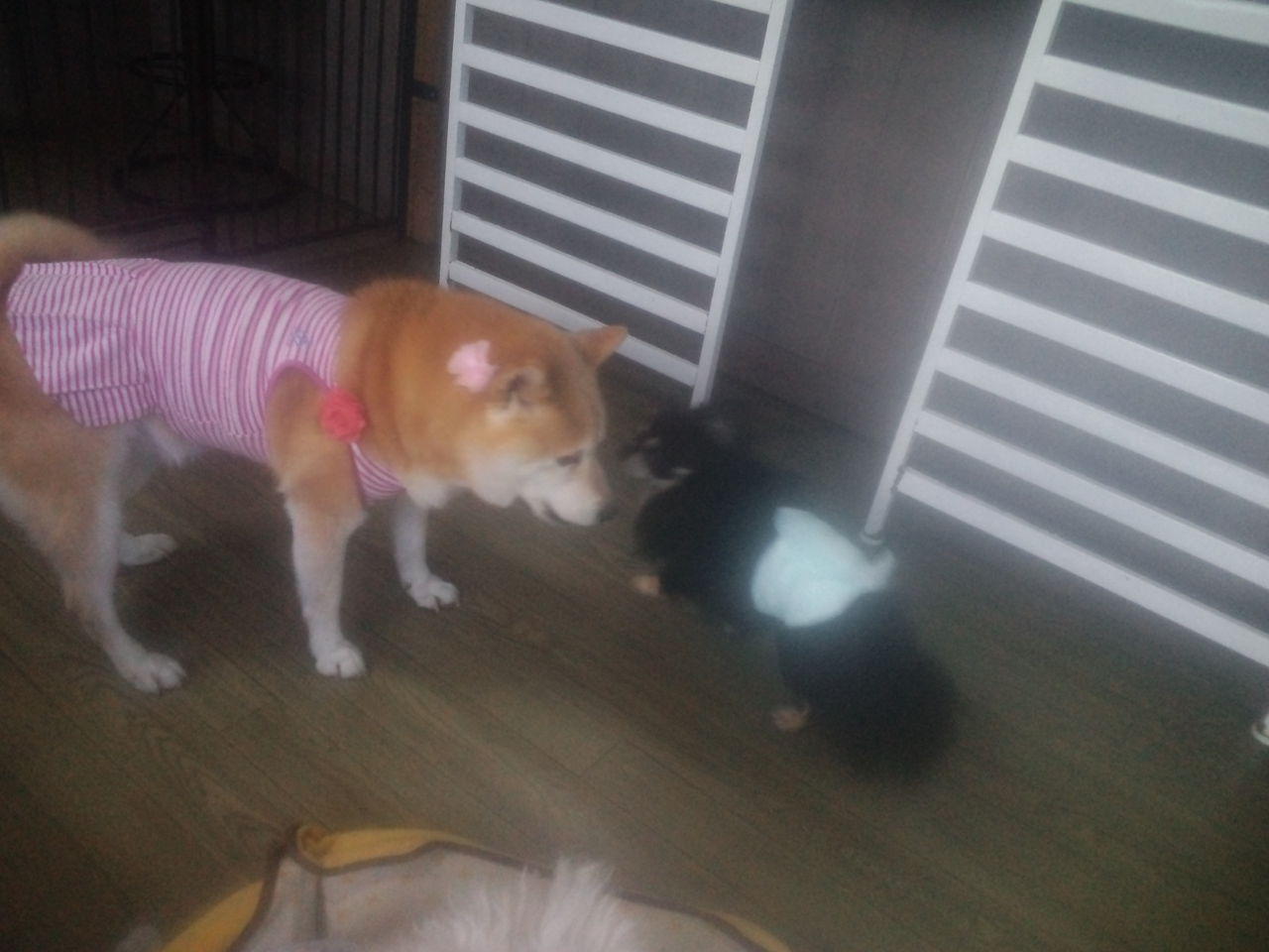キャバリア大吉君やロッキー君も母屋に入れてみたので、柴凛ちゃんも母屋に連れて来てみました。