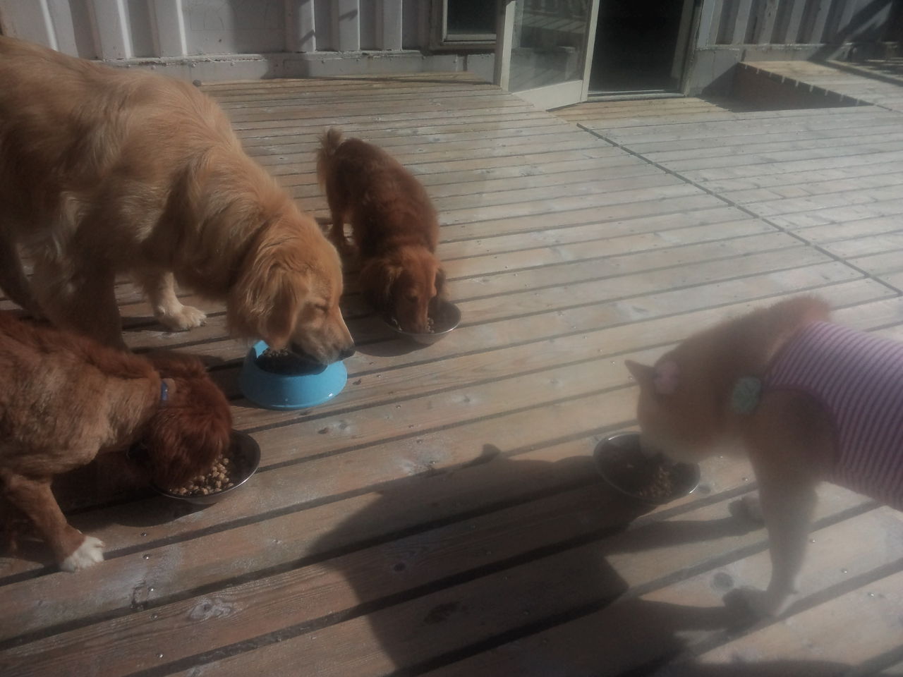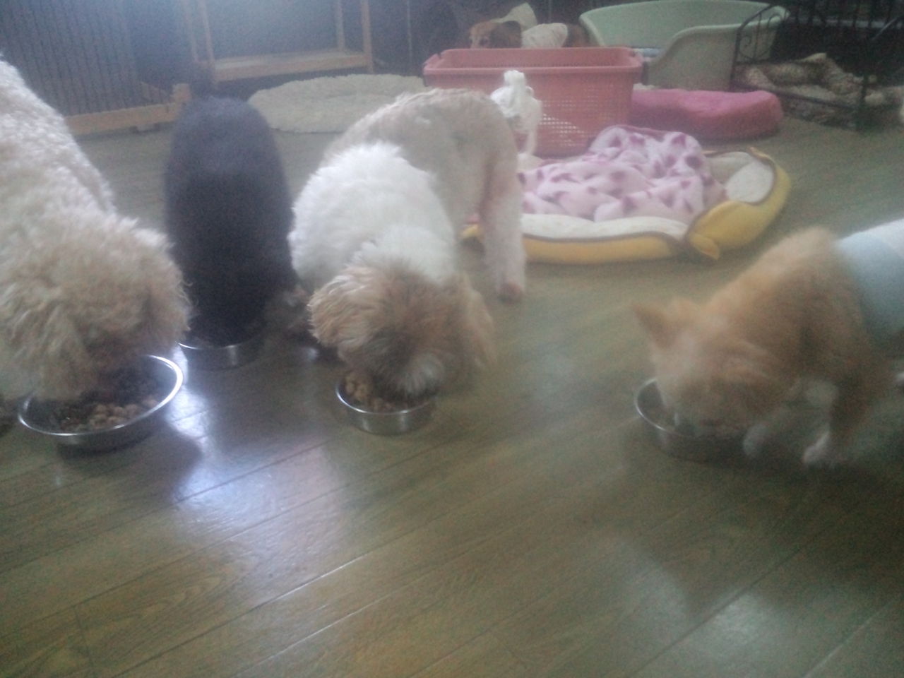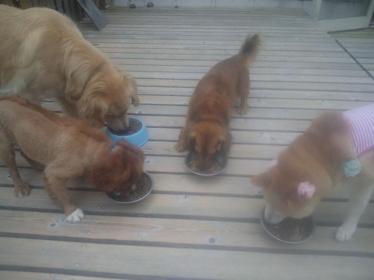長期預かりゴールデンズのジョジョ君と小太郎君、カリーナちゃんとキャバリア大吉君しっかり完食しました。