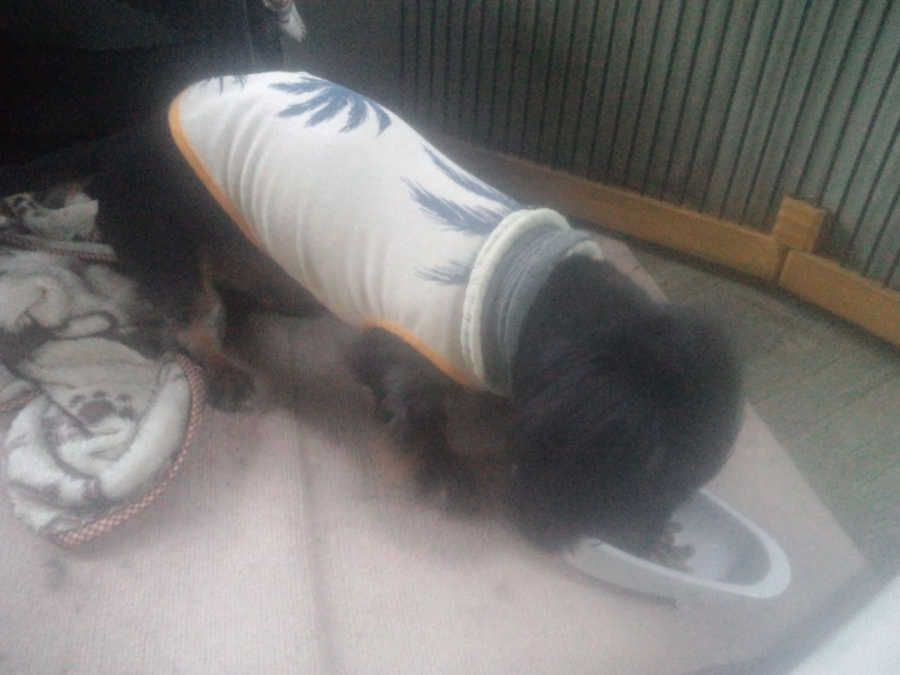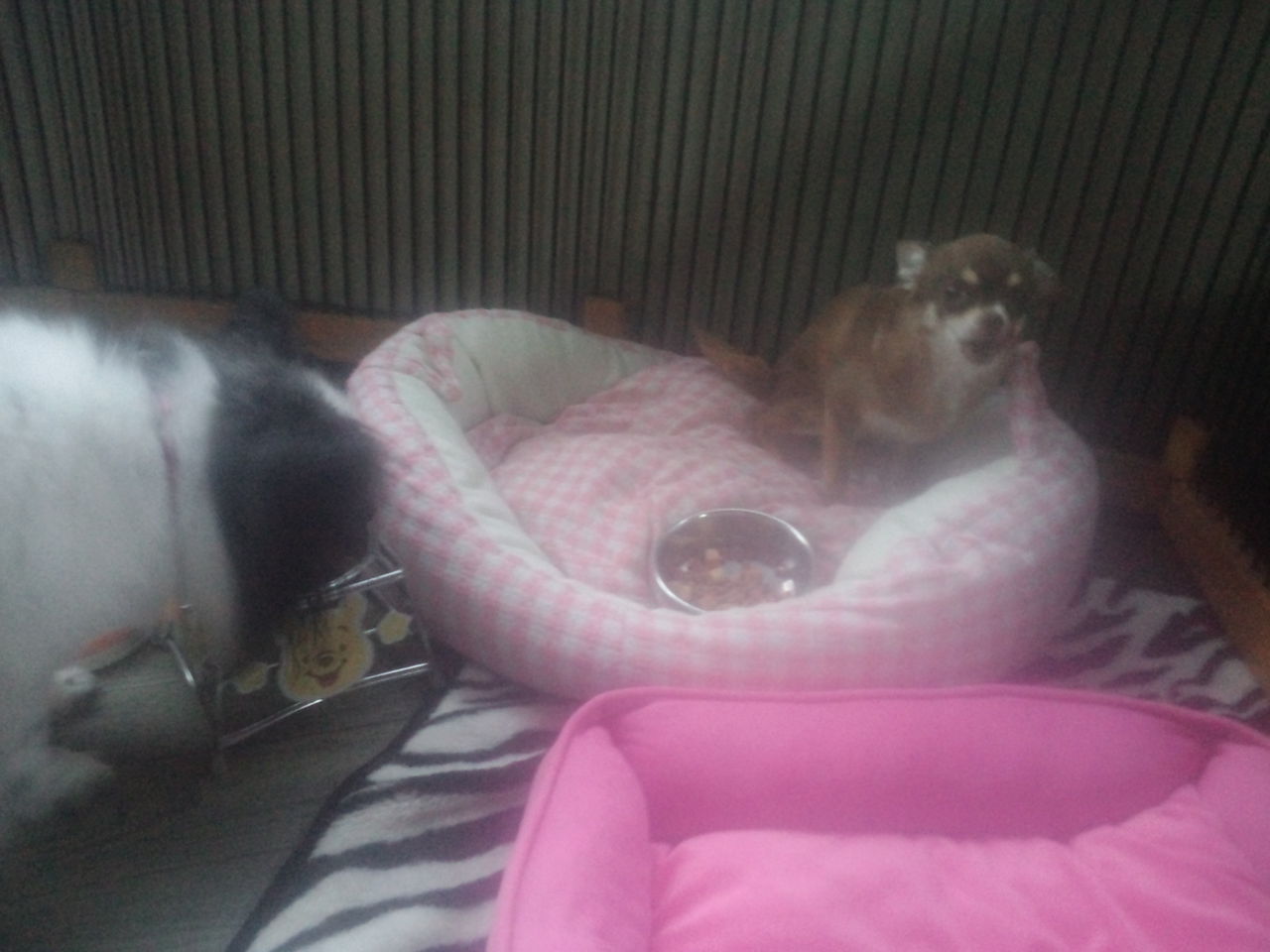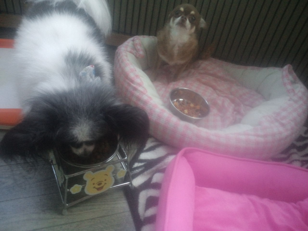 パピヨンリュウ君しっかり完食しました。チワワココちゃん、少しずつ食べて完食しました。