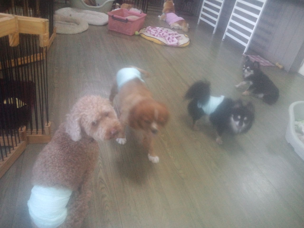 長期預かりゴールデンズのジョジョ君と小太郎君、カリーナちゃんとキャバリア大吉君、しっかり完食しました。