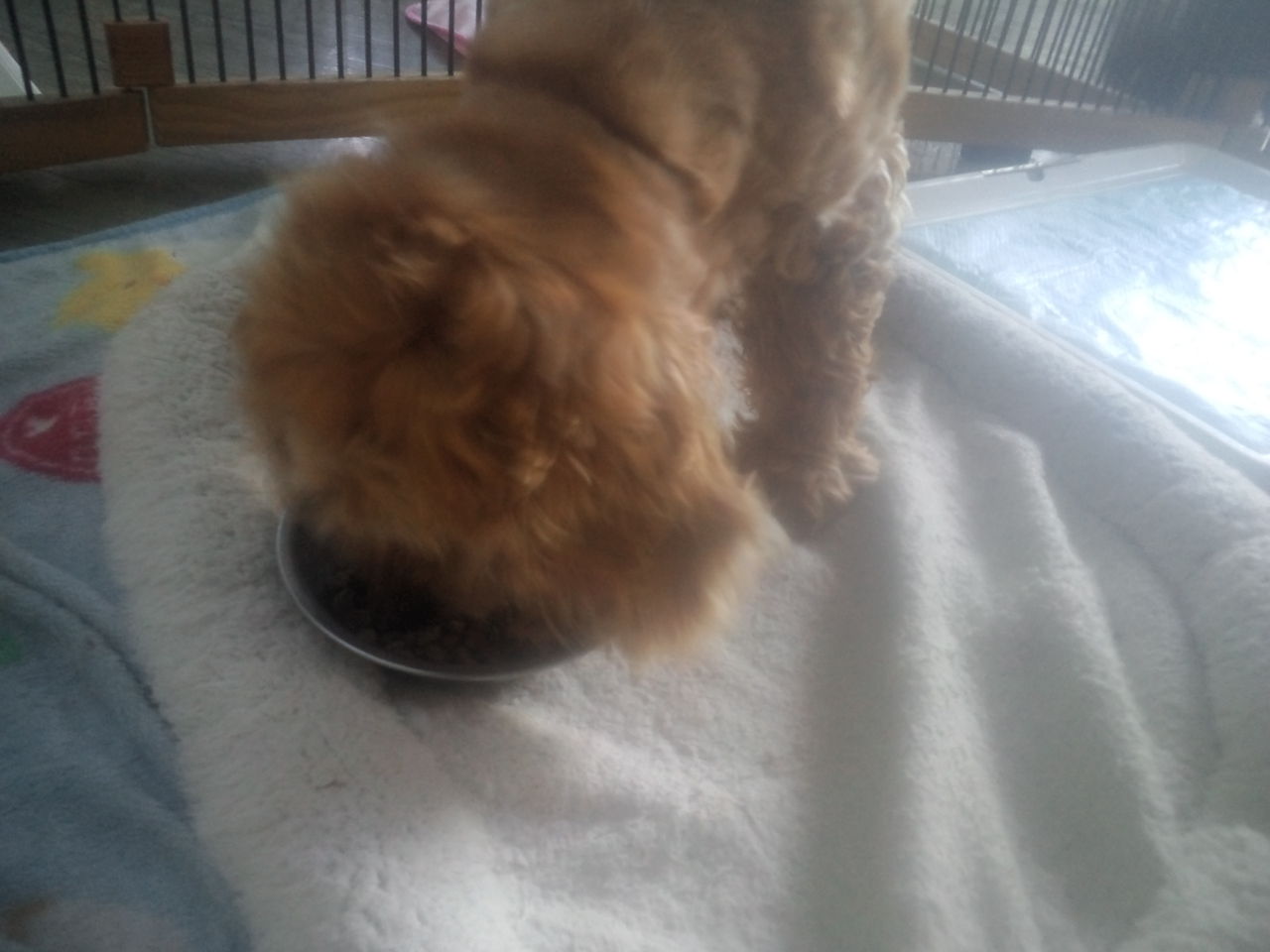 ご飯も要求吠えして欲しがる様になりました。立ち上がってサークル内を歩き回る様にもなりました。