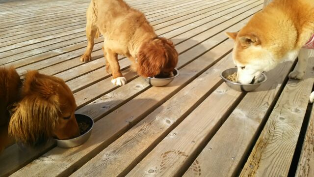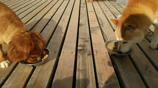 生涯お預かりダックスロッキーくん、柴犬凛ちゃんしっかり完食しました。