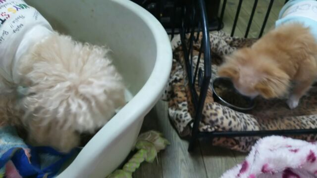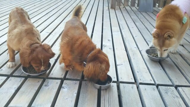 長期お預かりゴールデンカリーナちゃん、キャバリア大吉くんしっかり完食しました。
