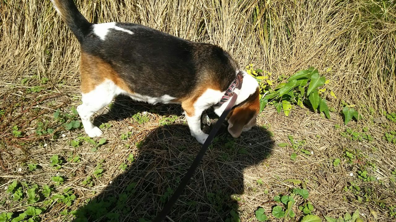 夕方は草むらが気になるようで草むらに入って匂いをたくさんクンクンしました。 すぐにおしっことうんちをして、クンクンした草むらで2回目のおしっこもしました。