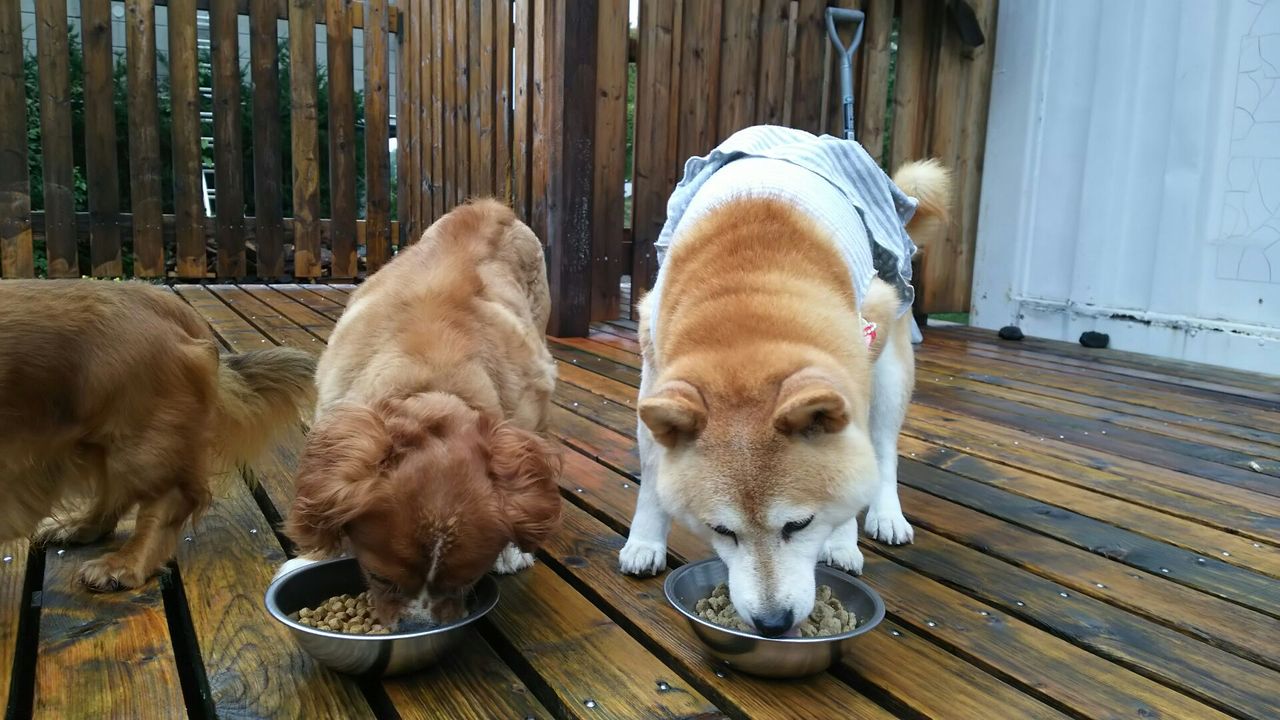 生涯お預かりダックスロッキーくん、柴犬凛ちゃんしっかり完食しました。