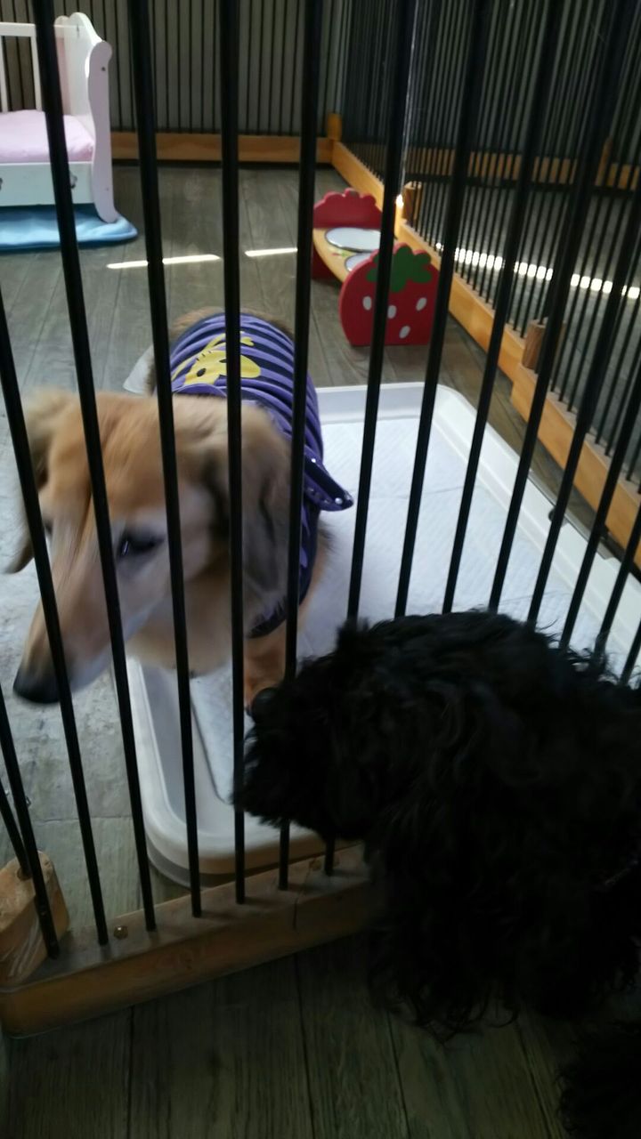 サークルの前の方まで出てきて他のわんちゃんと匂いを嗅ぎあっています。 そのあとは自分のベッドに行きました。