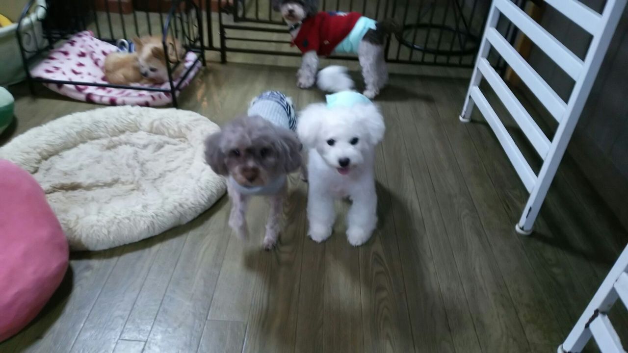 先月にも来てくれたトイプーズマロンちゃん、クリークくん、カールくん、コーラくんがチェックインしました。