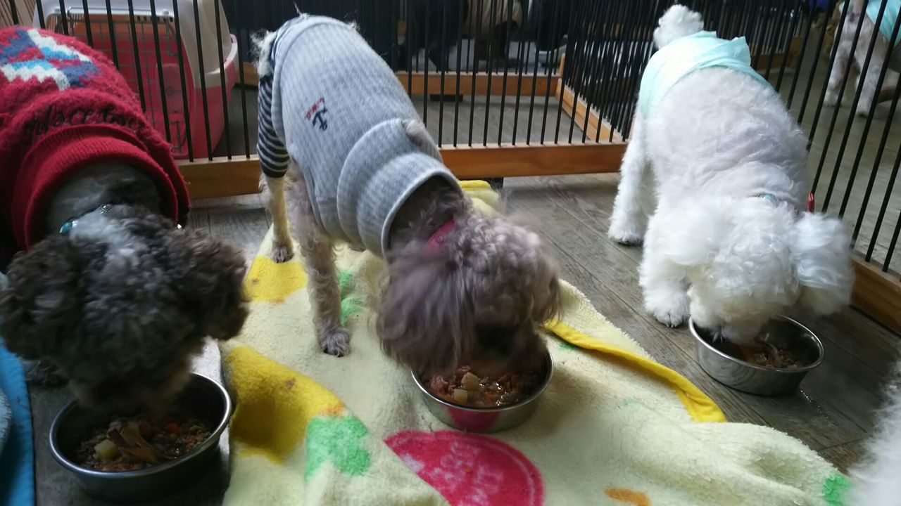 トイプーズマロンちゃん、コーラくんはしっかり完食しました。 カールくん、クリークくんは口をつけませんでした。