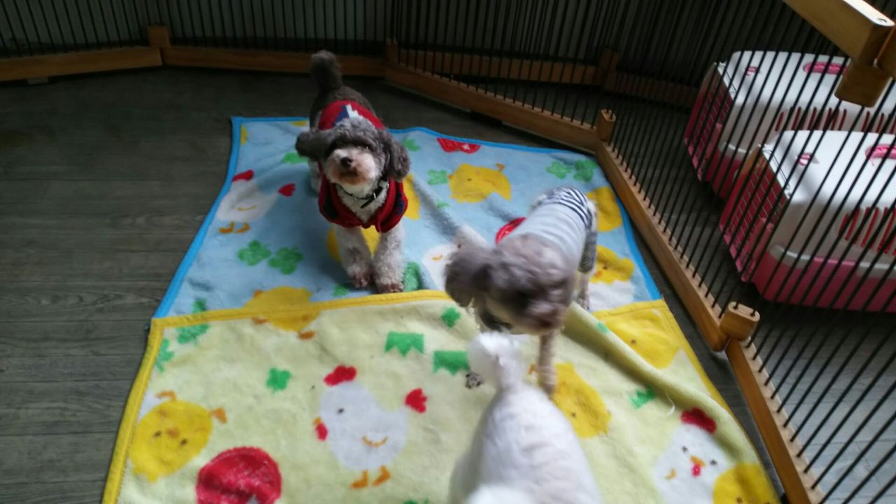 すぐにサークルから出たがって大騒ぎです。 最初は少しだけヒュンヒュン鳴いていましたが、すぐに鳴きやみ他のわんちゃんのところに行ったり、スタッフに甘えたりしています。