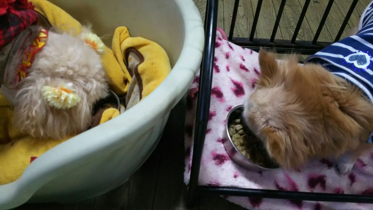 長期お預かりチワワバロンくん、トイプーゆずちゃんしっかり完食しました。