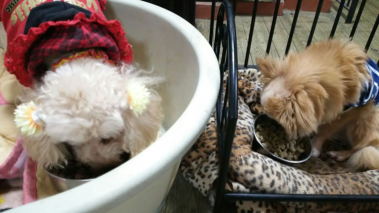 長期お預かりチワワバロンくん、トイプーゆずちゃんしっかり完食しました。