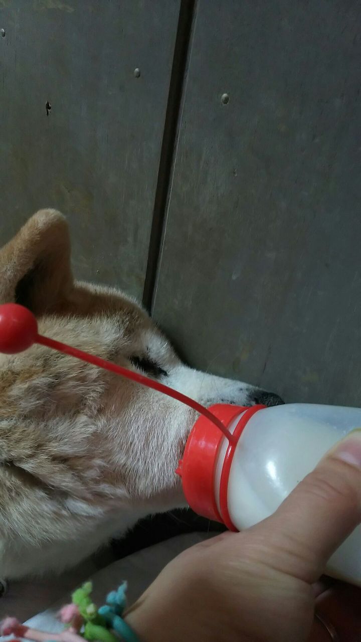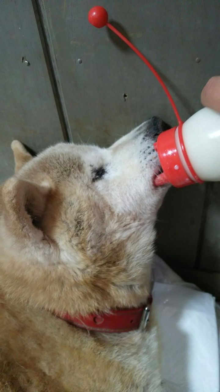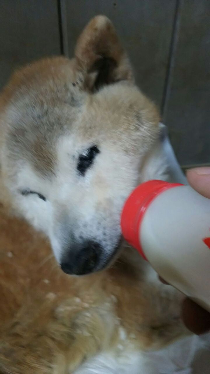 生涯お預かり柴犬さくらちゃん流動食をしっかり飲みました。