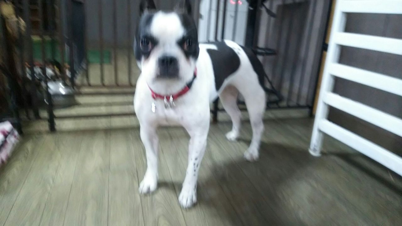 すぐにサークルから出てみんなと一緒にいます。 スタッフにウーと警戒をしていますが、しゃがむと近くに寄ってきて匂いを嗅ぎに来ます。 慣れれば大丈夫そうですね。