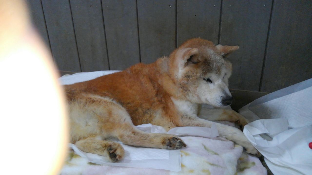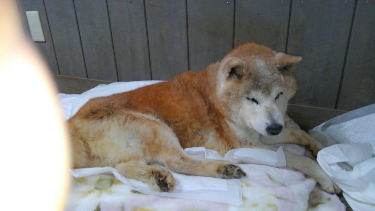 柴さくらちゃん、一昨日から後ろ足が立たなくなり、徘徊ルームから、小型犬エリアにお引っ越しました。