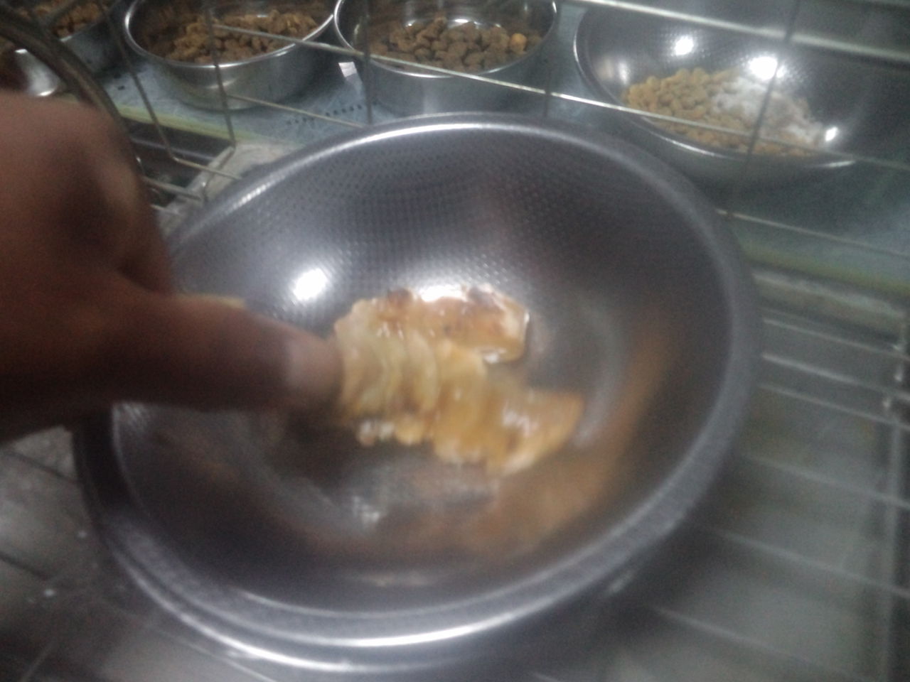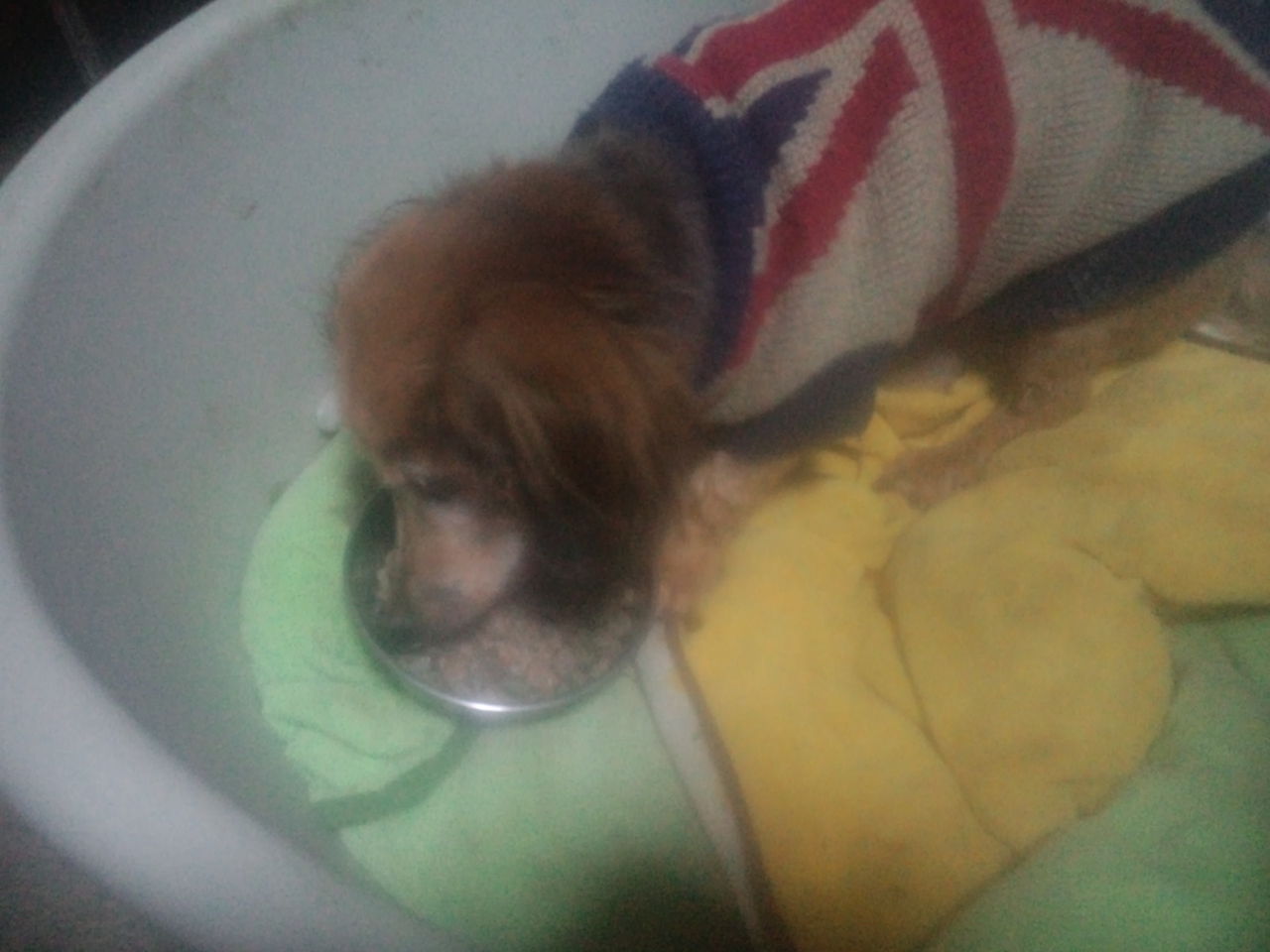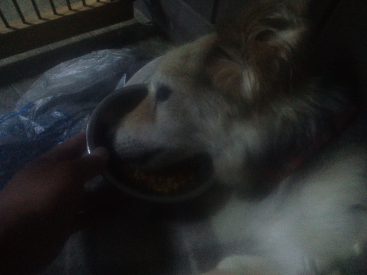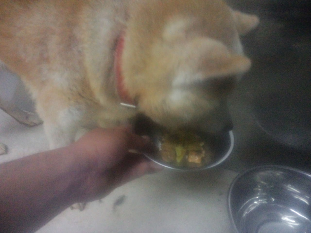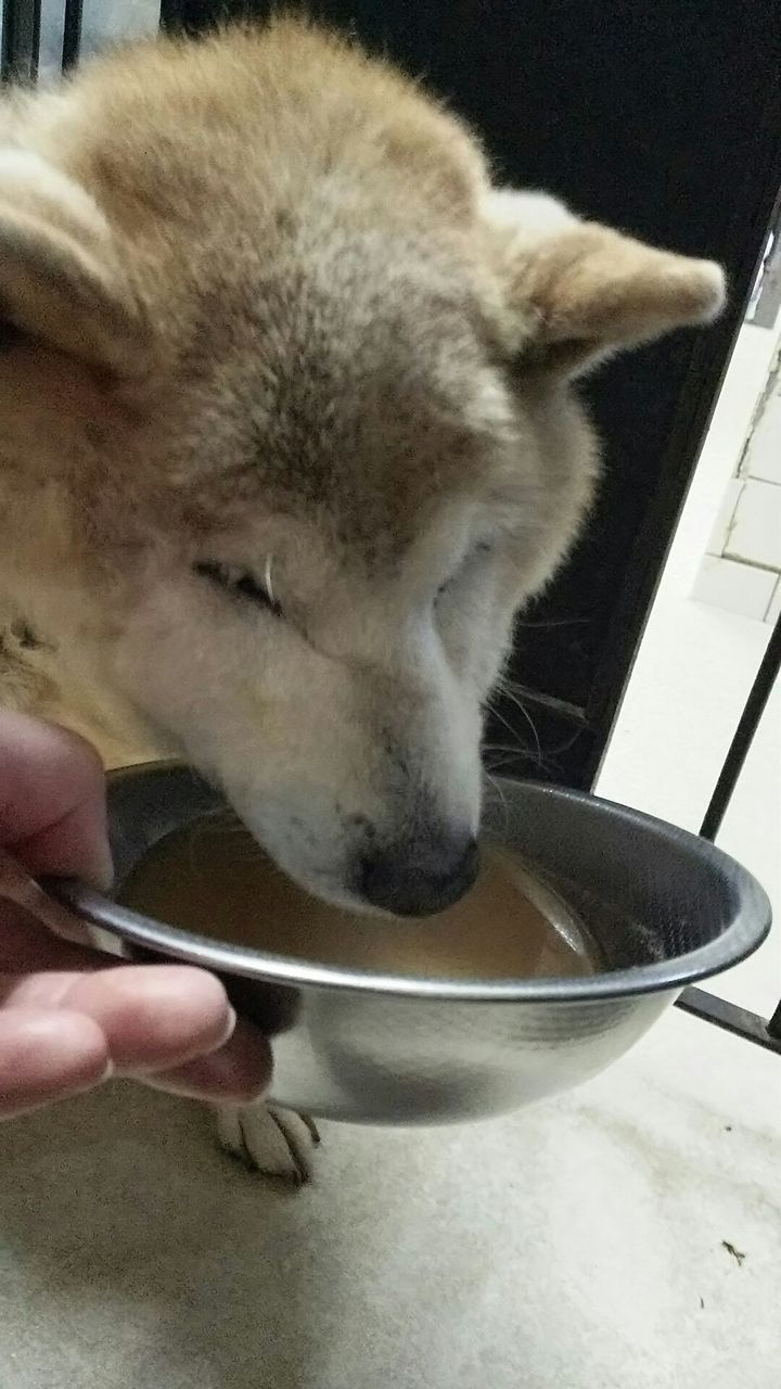 生涯お預かり柴犬さくらちゃん今日は缶詰を水で溶いたものをあげました。口をつけませんでした。 そのまま置いておきます。