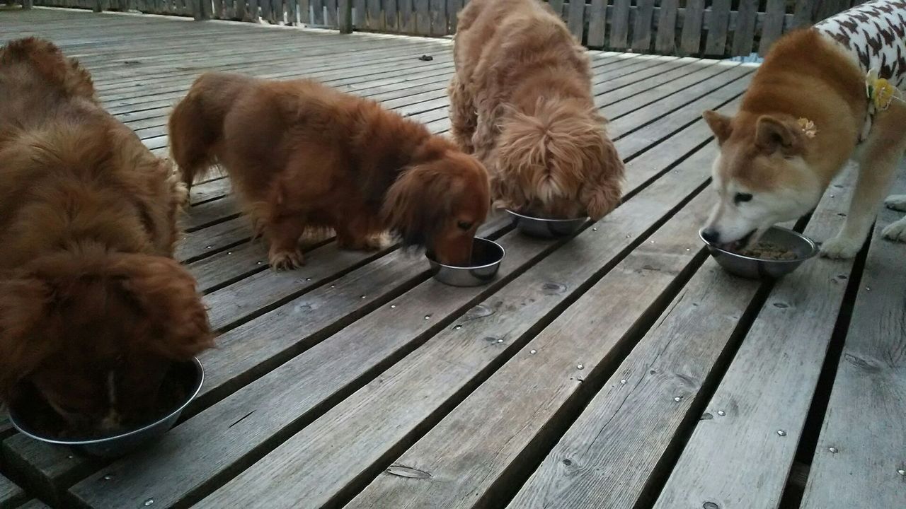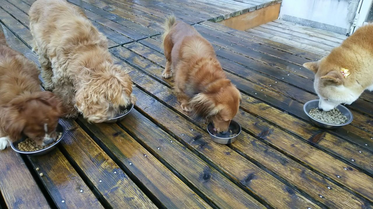 長期預かりゴールデンズのジョジョ君と小太郎君、キャバリア大吉君とミックスシバァちゃん、しっかり完食しました。 生涯預かりコッカーチャッピーちゃんとシーズーココ君、しっかり完食しました。