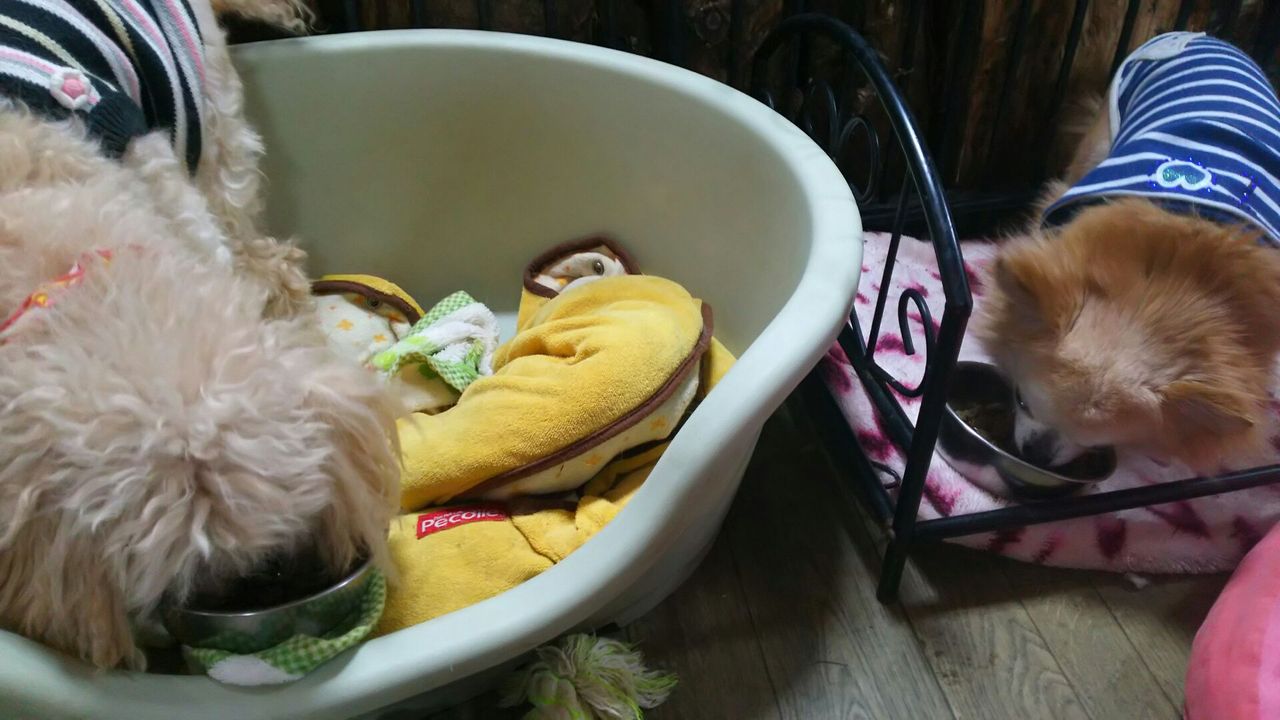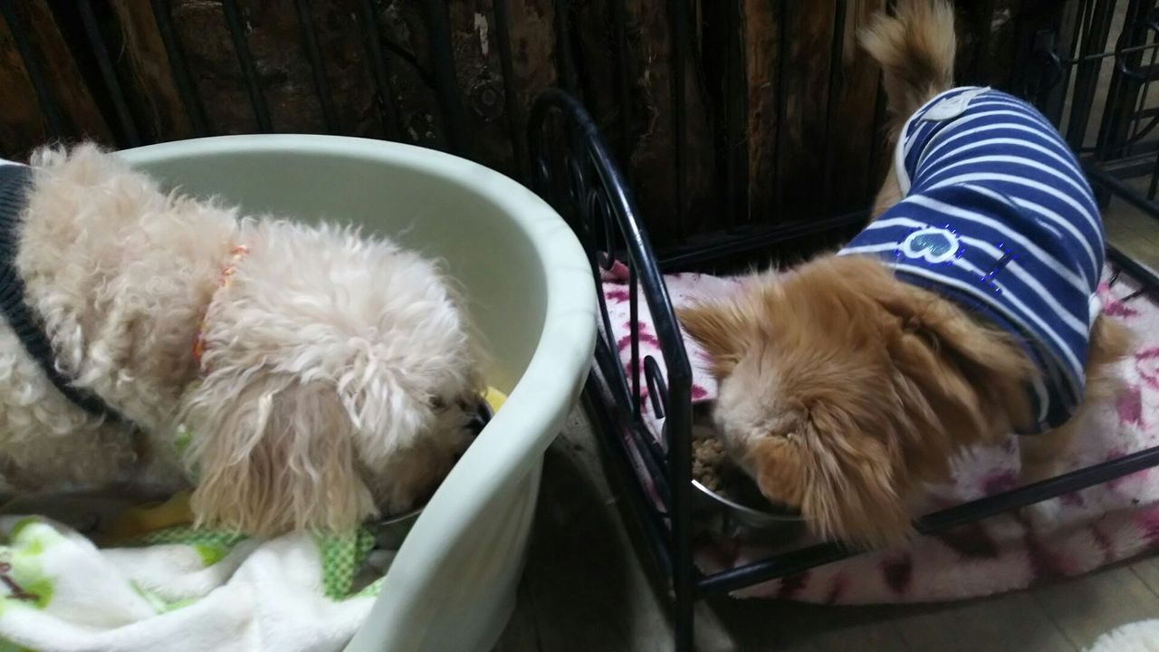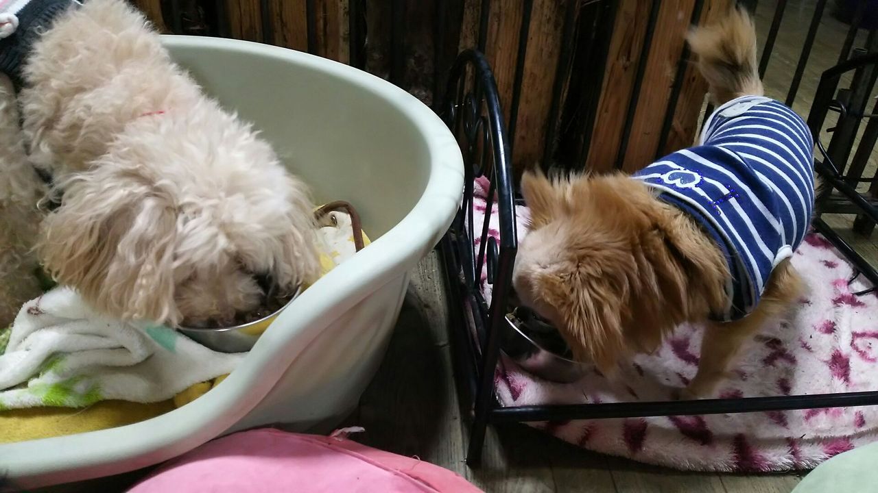 長期お預かりトイプーゆずちゃん、キャバリア大吉くんしっかり完食しました。