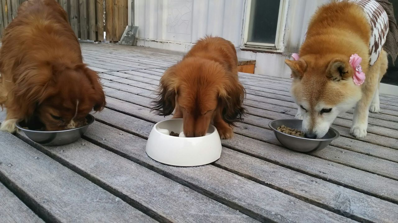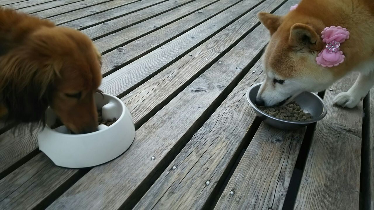 生涯お預かりダックスロッキーくん、柴犬凛ちゃんしっかり完食しました。