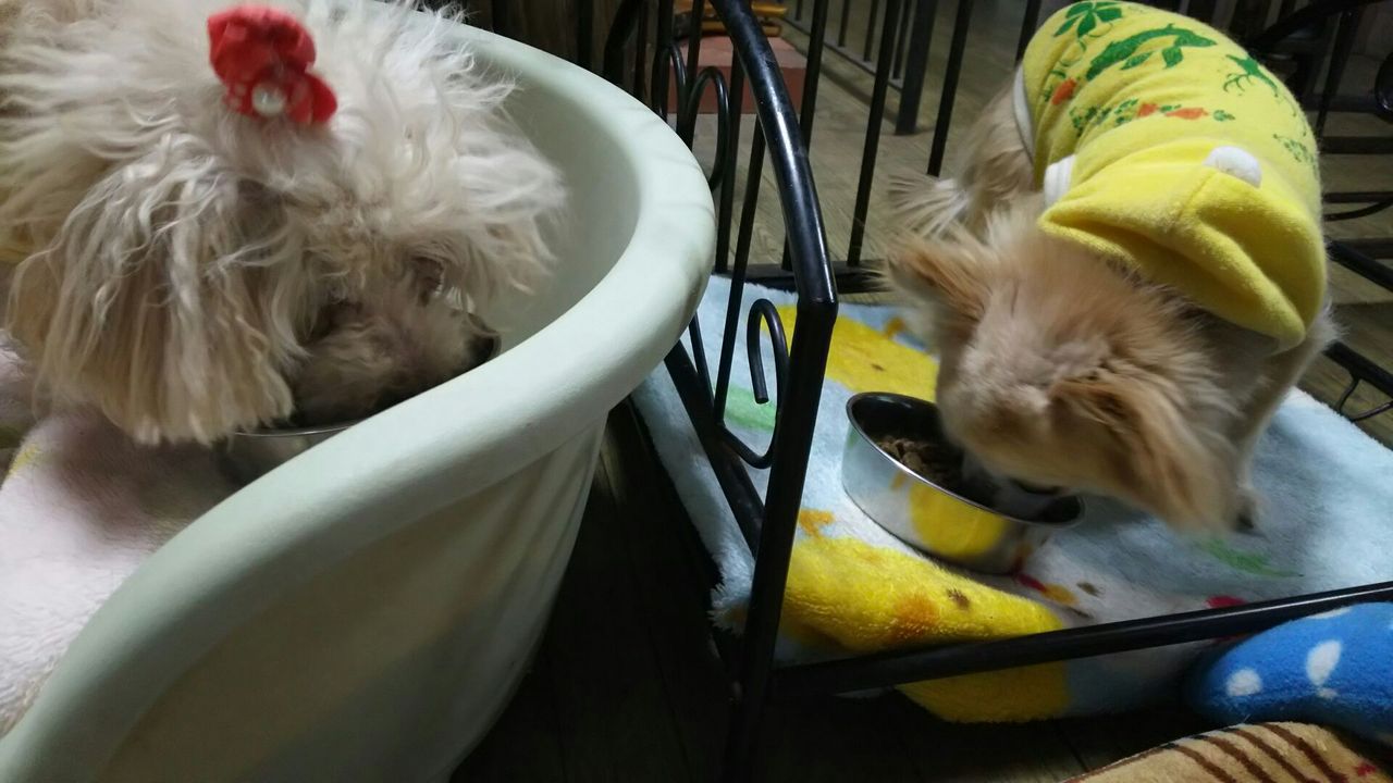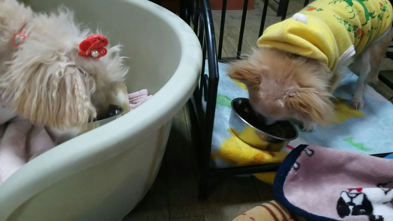 長期お預かりトイプーゆずちゃん、キャバリア大吉くんしっかり完食しました。