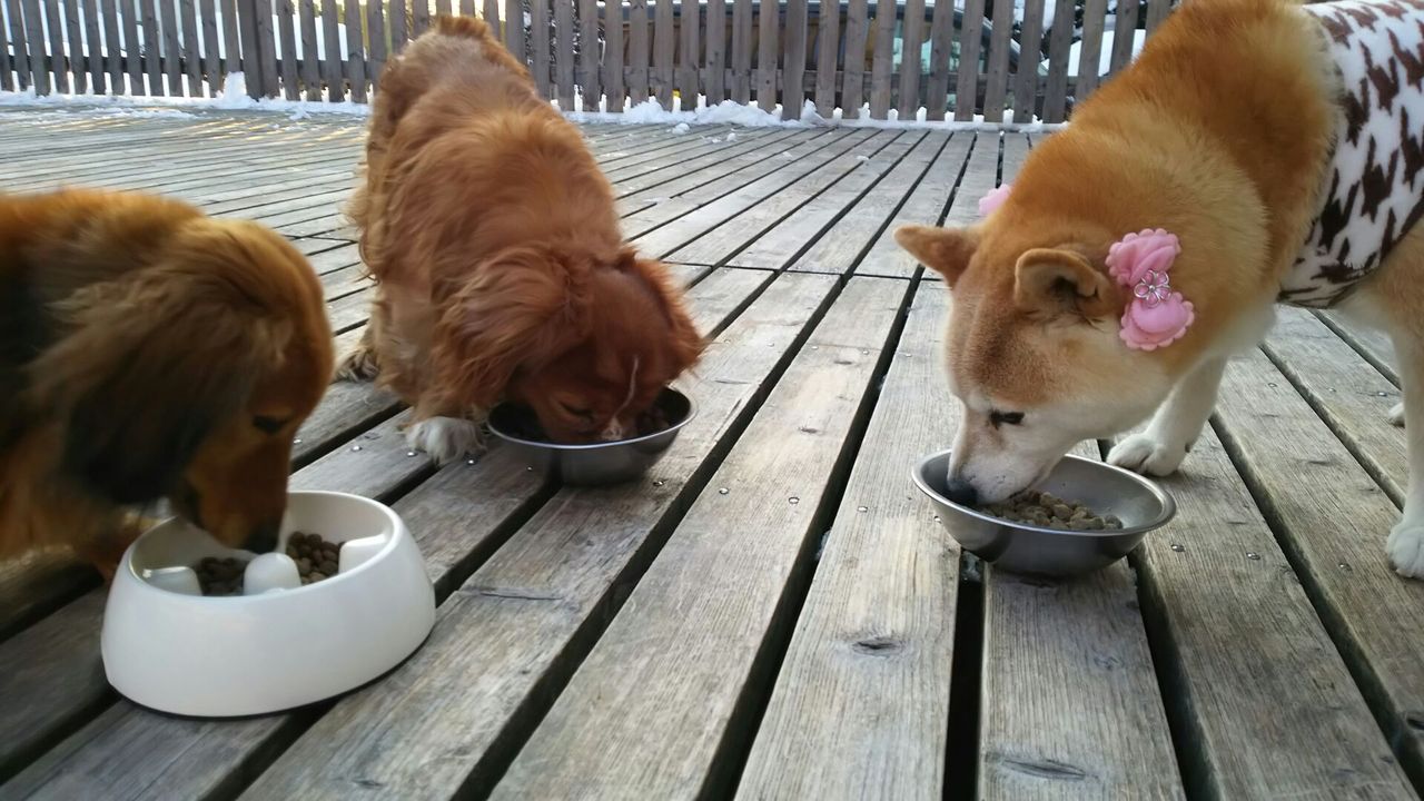 生涯お預かりダックスロッキーくん、柴犬凛ちゃんしっかり完食しました。