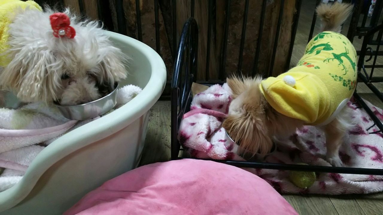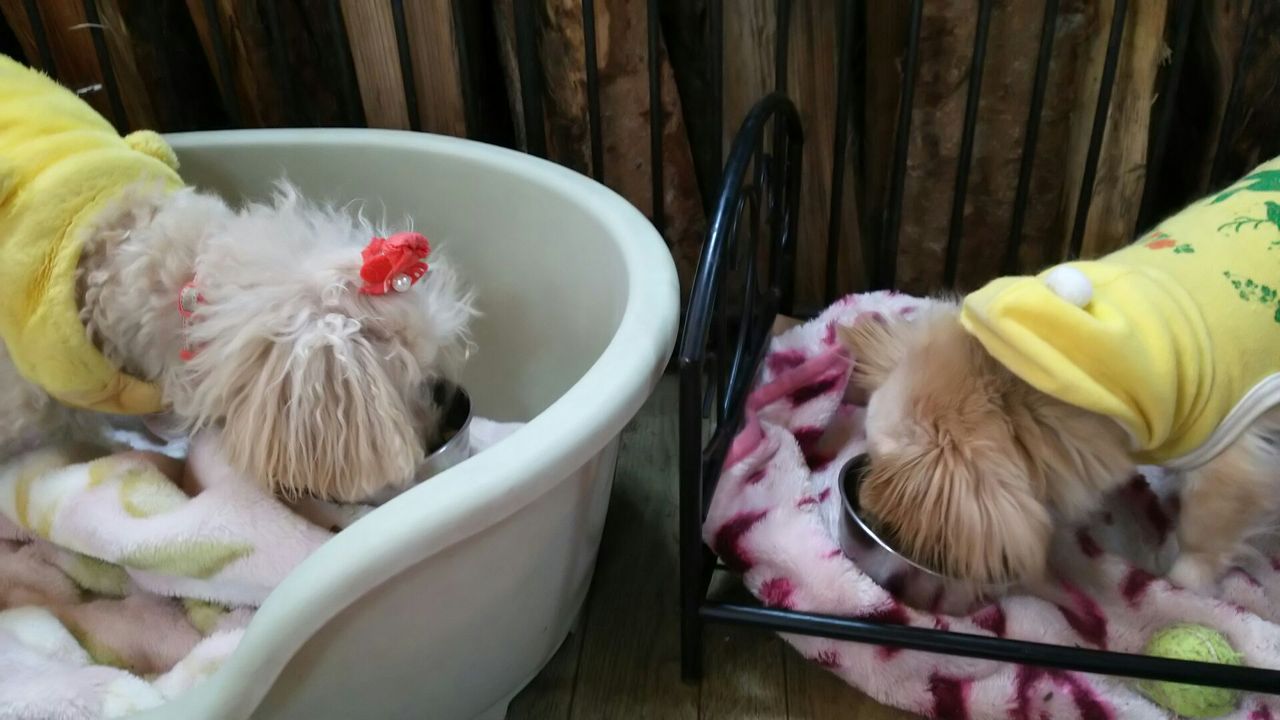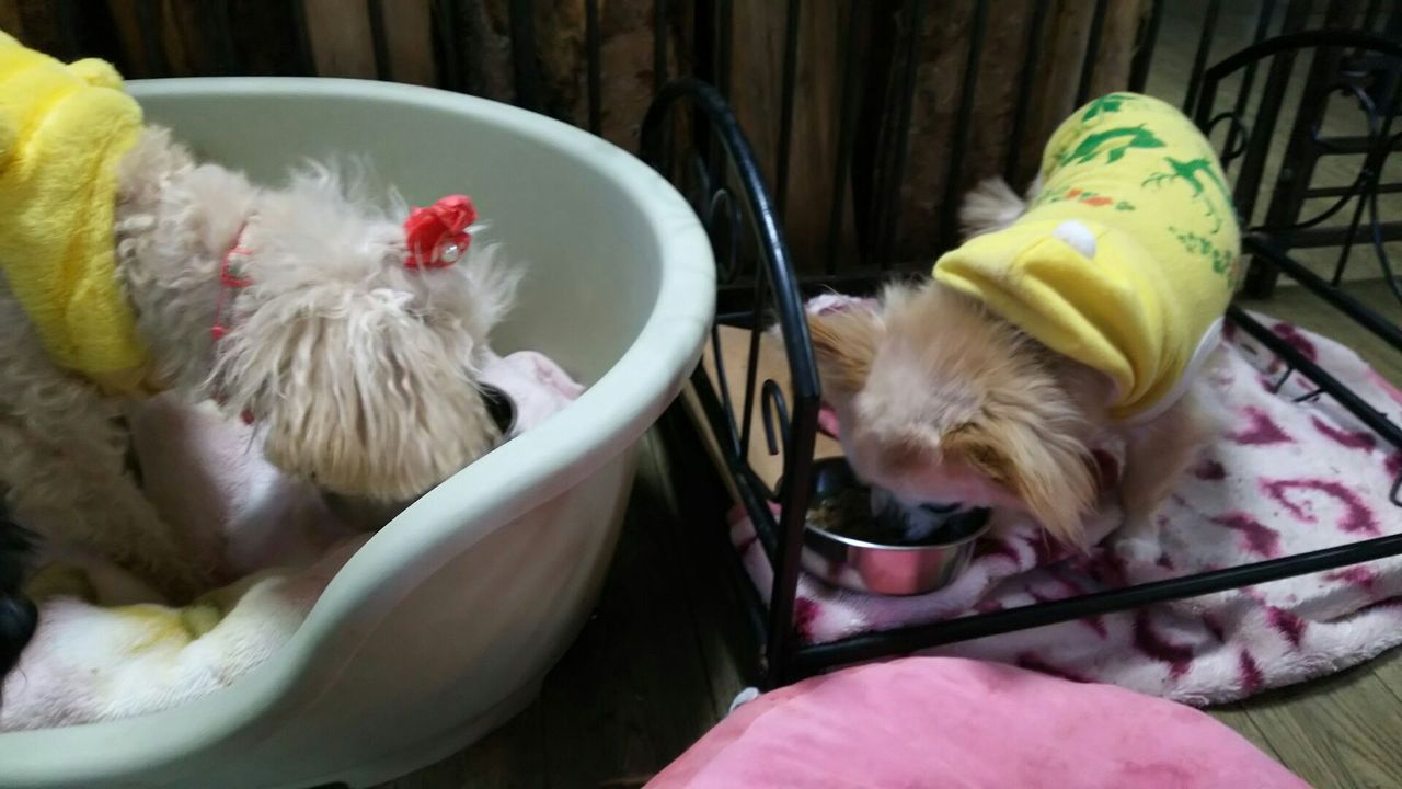 長期お預かりトイプーゆずちゃん、キャバリア大吉くんしっかり完食しました。