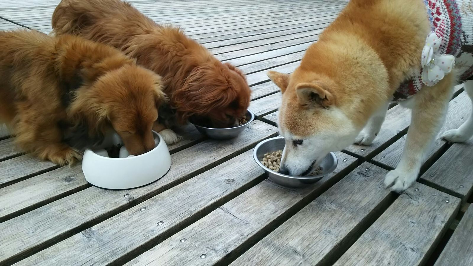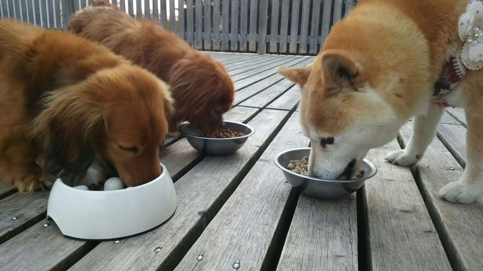 生涯お預かりダックスロッキー君、柴犬凛ちゃんしっかり完食しました。