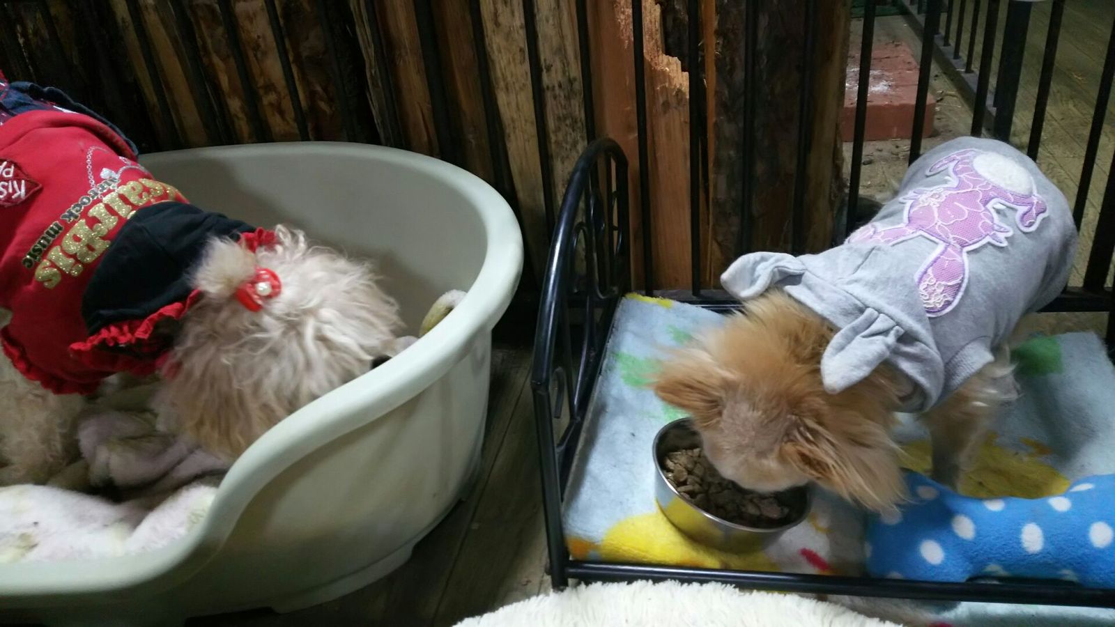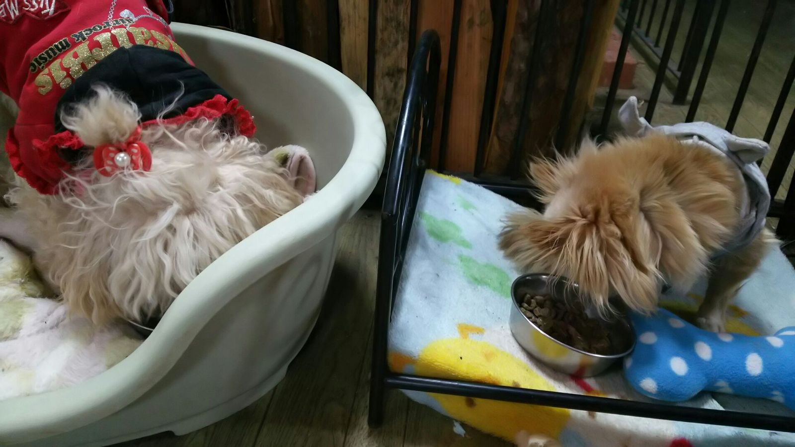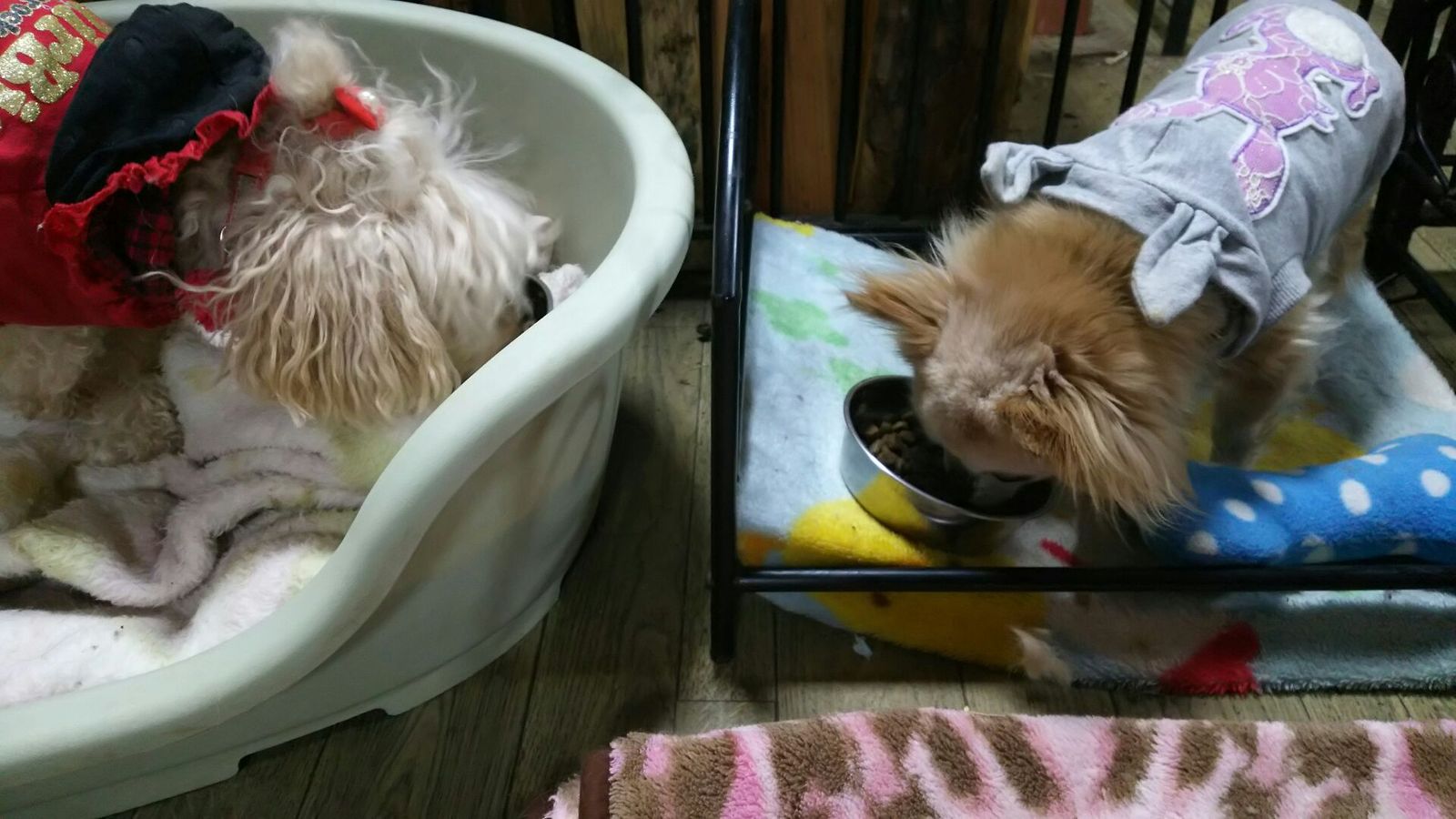 お預かりしたばかりの時は威嚇して凄い勢いで鳴いていましたが、サークルから出るようになってみんなと一緒にいるようになるとそれもまったくなくなり、他のわんちゃんと同じベッドで一緒に寝たりしていましたね。