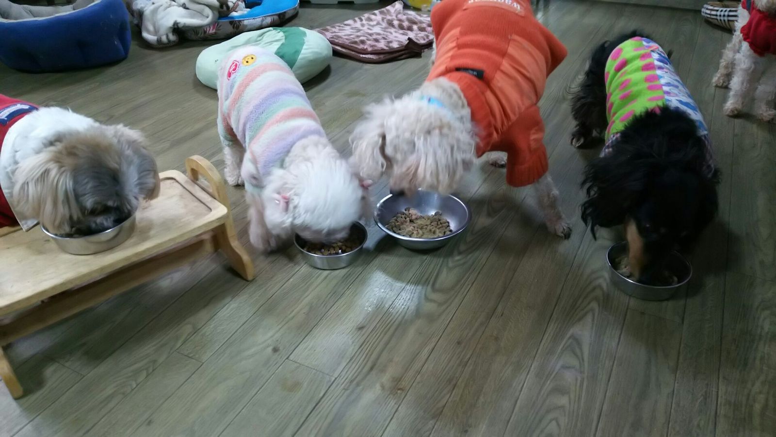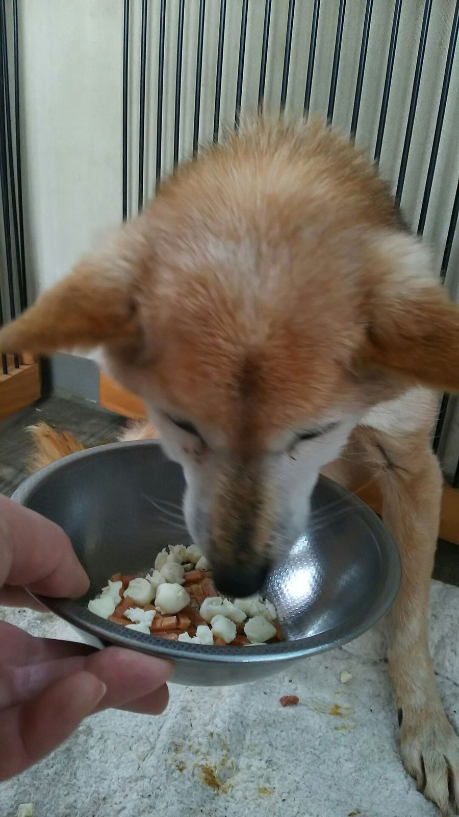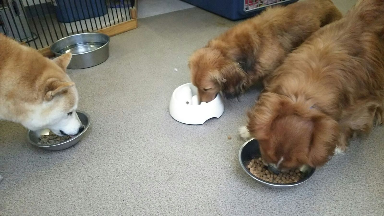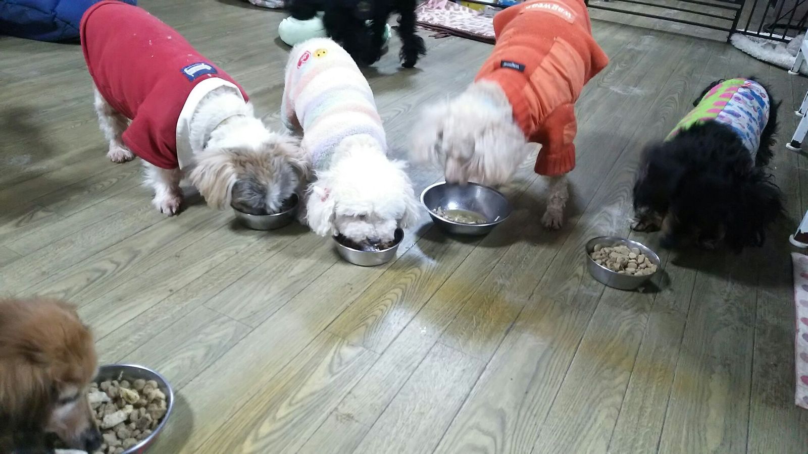 お預かりしたばかりの時は威嚇して凄い勢いで鳴いていましたが、サークルから出るようになってみんなと一緒にいるようになるとそれもまったくなくなり、他のわんちゃんと同じベッドで一緒に寝たりしていましたね。