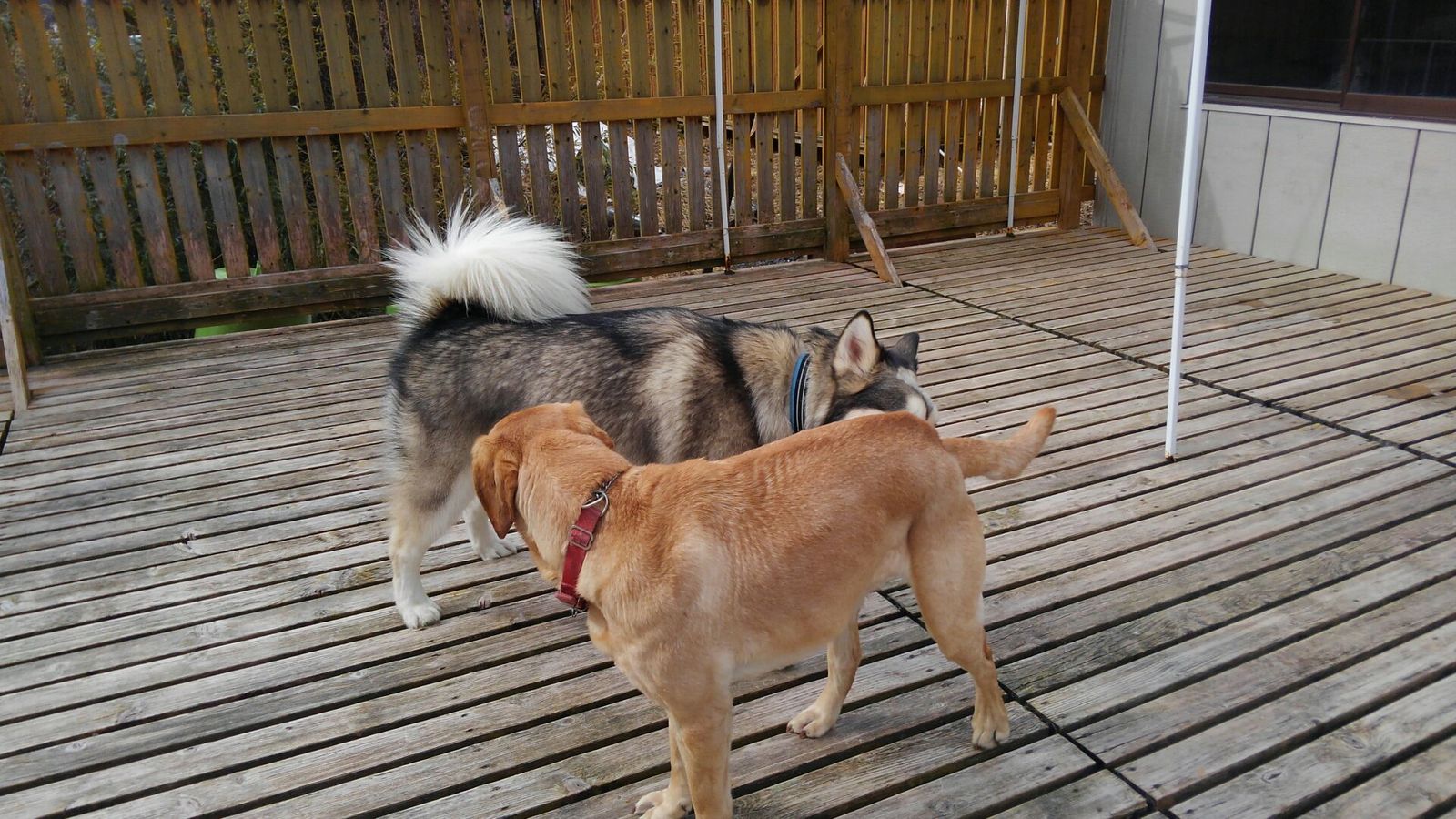 常連アラスカンマラミュートのカイ君とハナちゃんがチェックインしました。