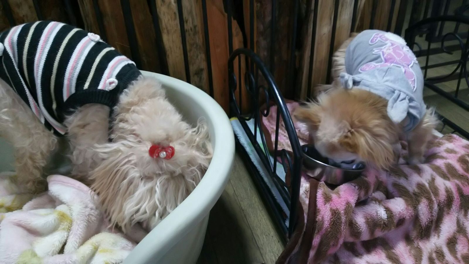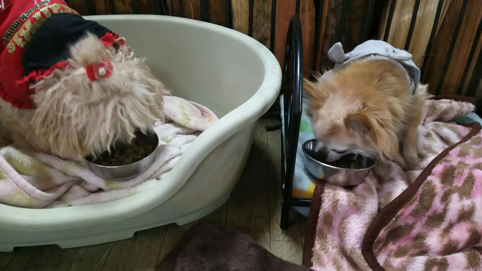 生涯お預かりトイプーベラちゃん、チワワ姫ちゃんしっかり完食しました。