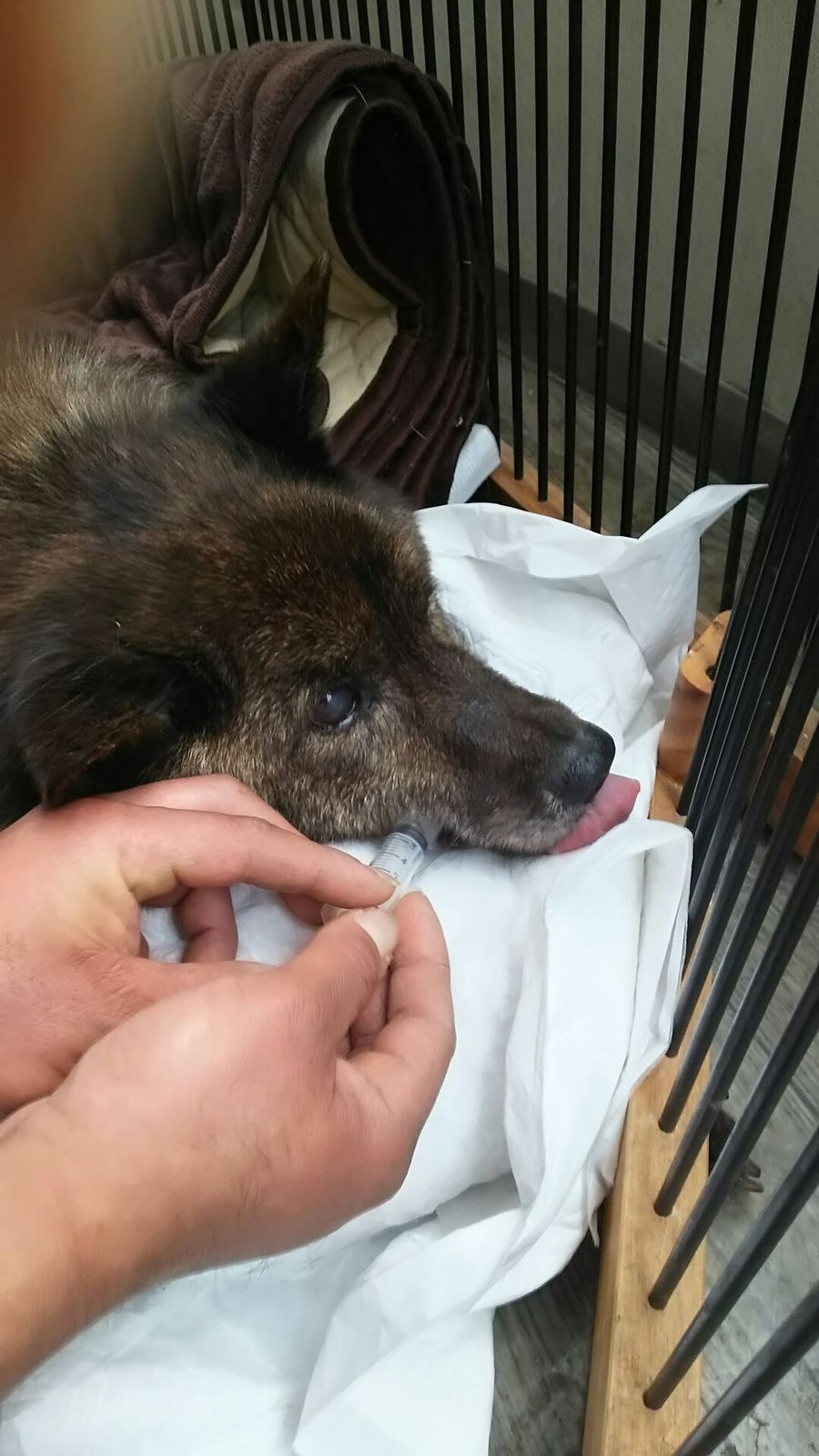 すぐにヒュンヒュン鳴いたので注射器で水を飲ませるとペロペロ飲んでいます。