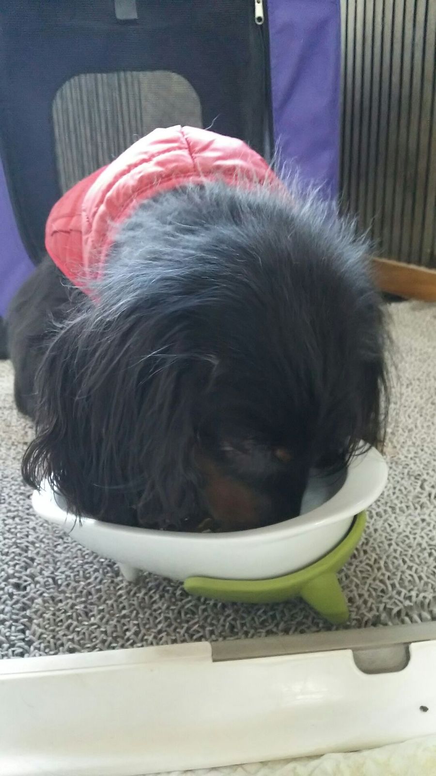生涯お預かりコッカーチャッピーちゃん少しだけ食べました。 朝ごはんは少し食べてありました。