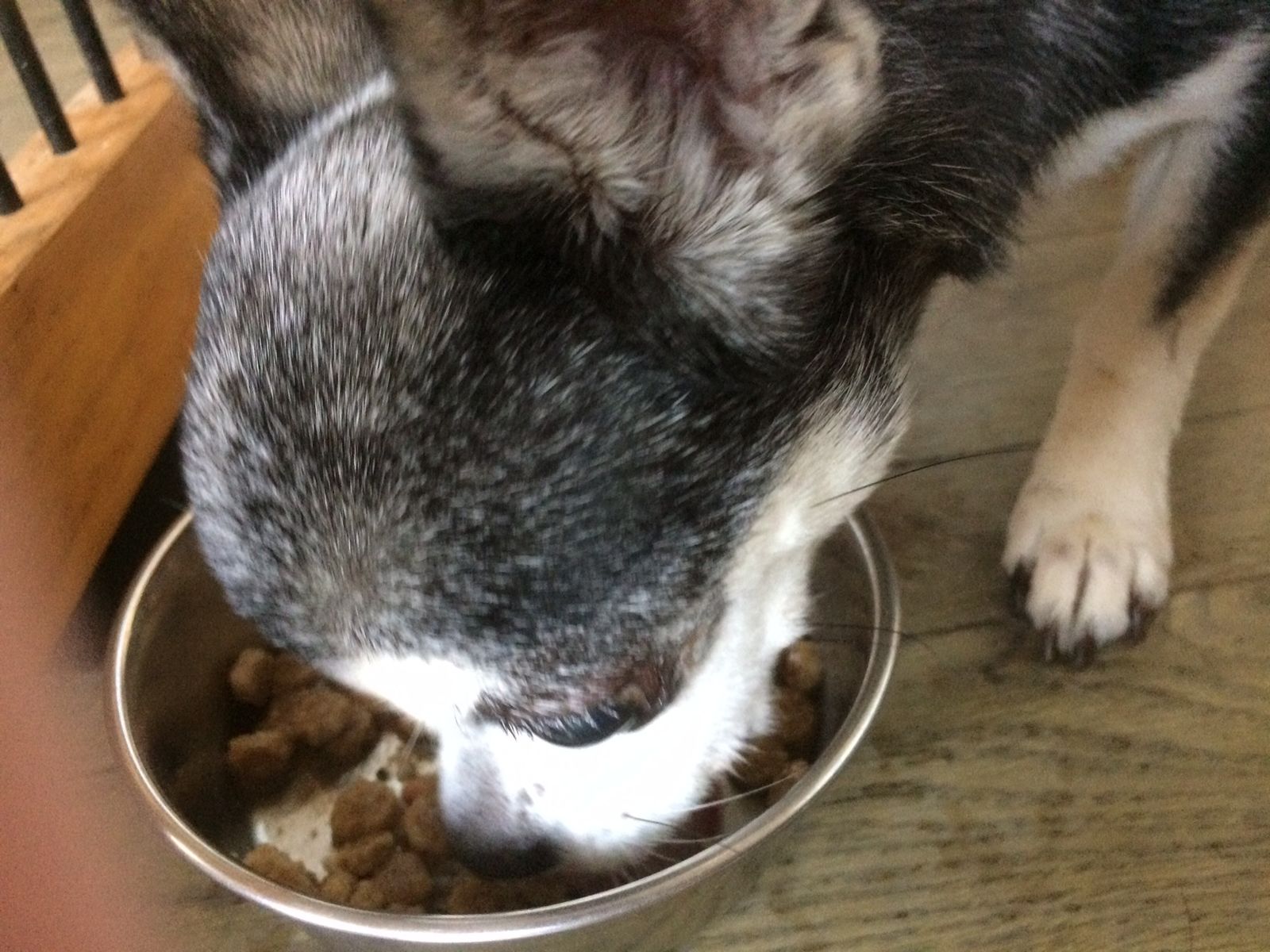 長期お預かりチワワビオラちゃん、他の子の分を横取りなどせず、きちんと自分の食事を完食しました。