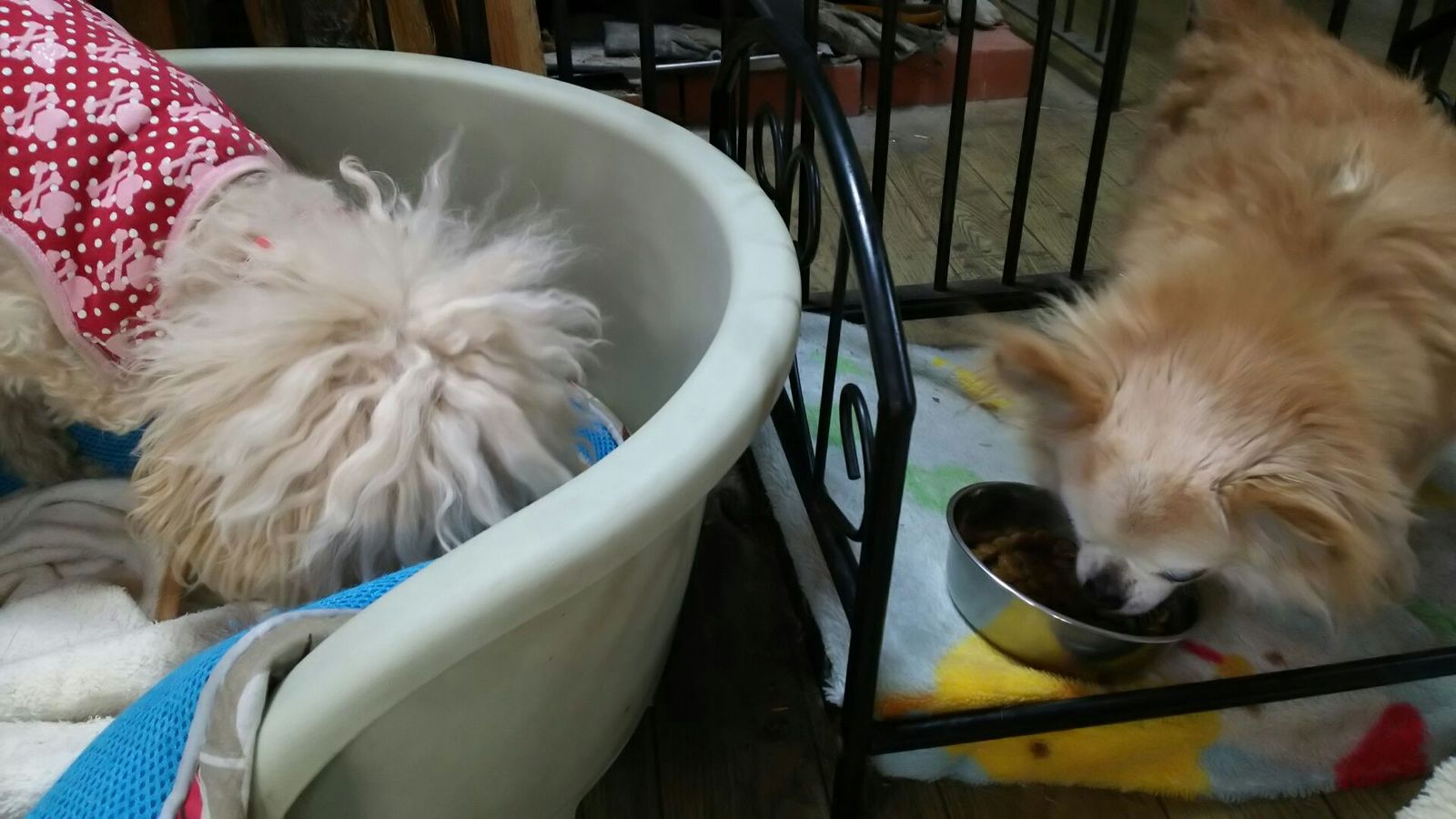 生涯お預かりチワワ姫ちゃん、シーズーココくんしっかり完食しました。