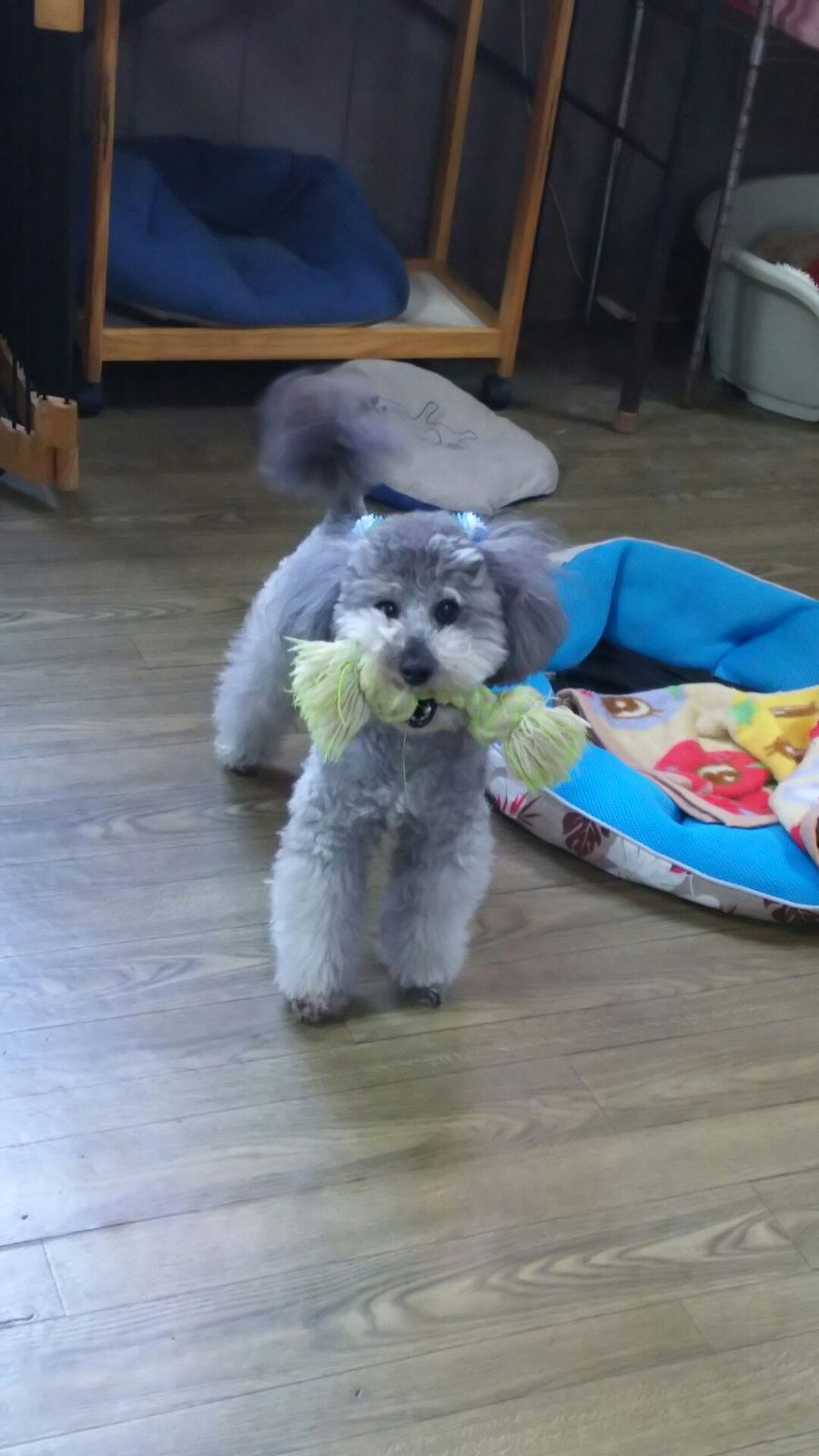 長期お預かりトイプーむぅたくん、ゆずちゃんしっかり完食しました。(*むぅたくんの写真、ブレちゃってごめんなさい)