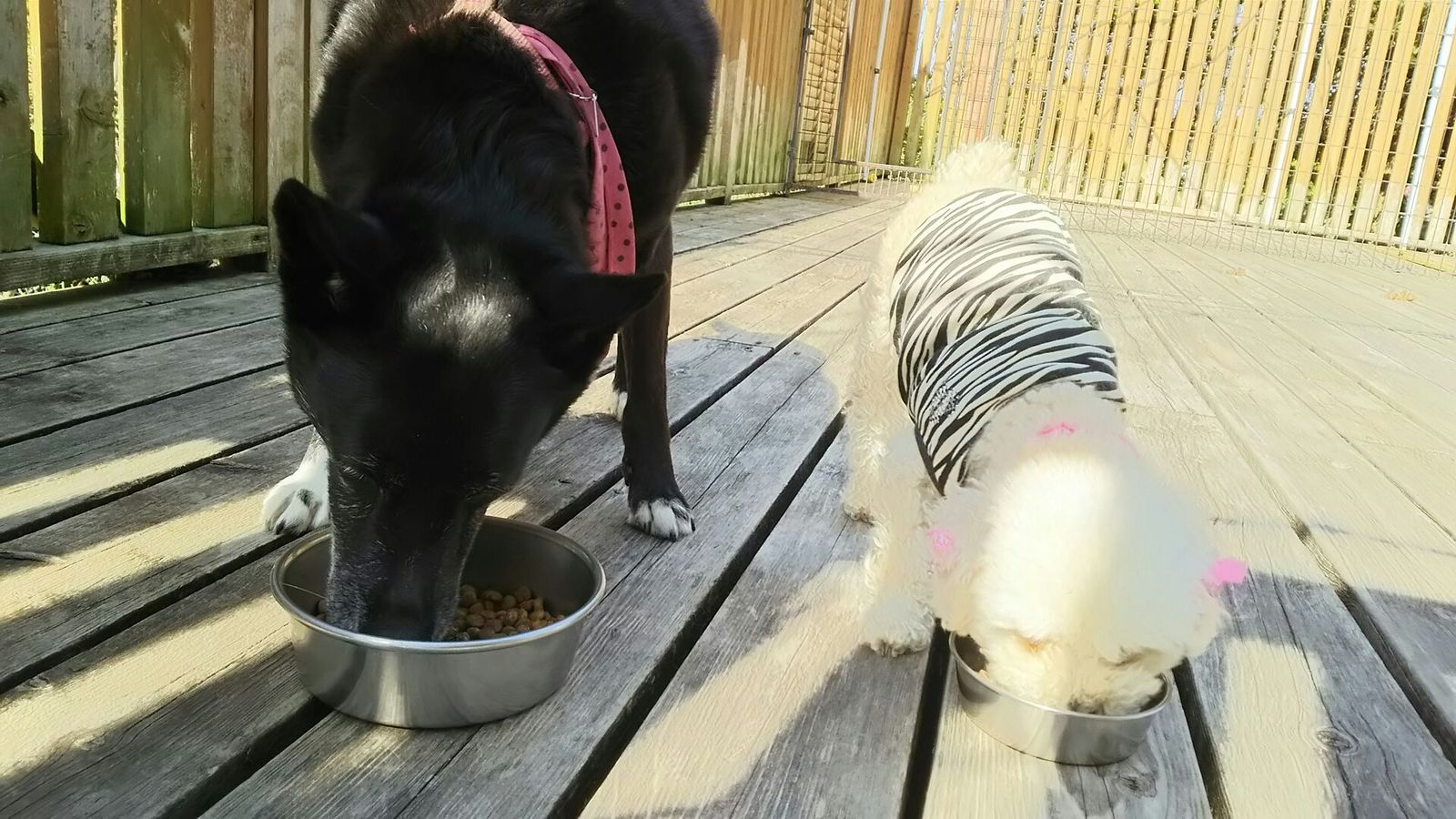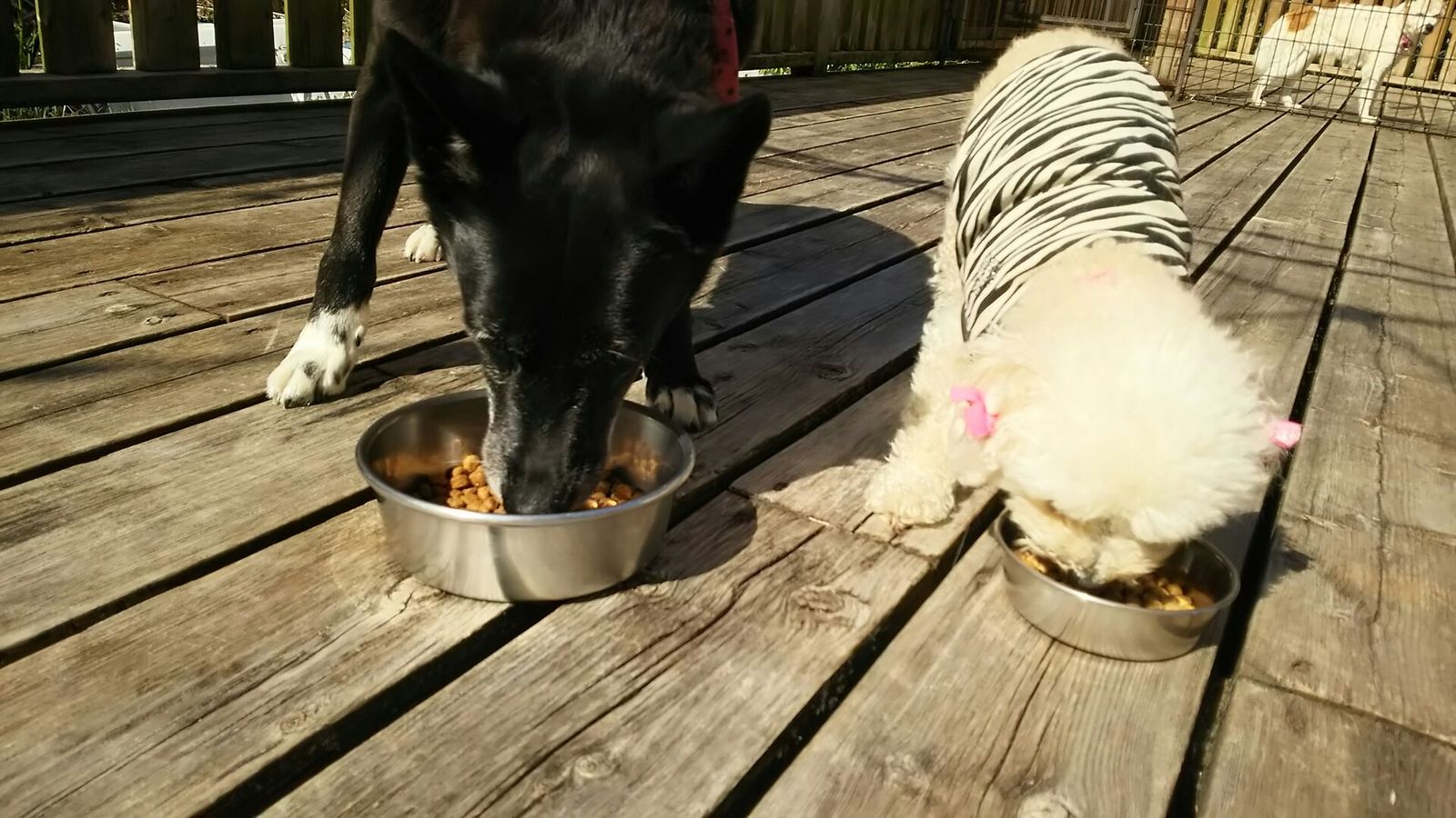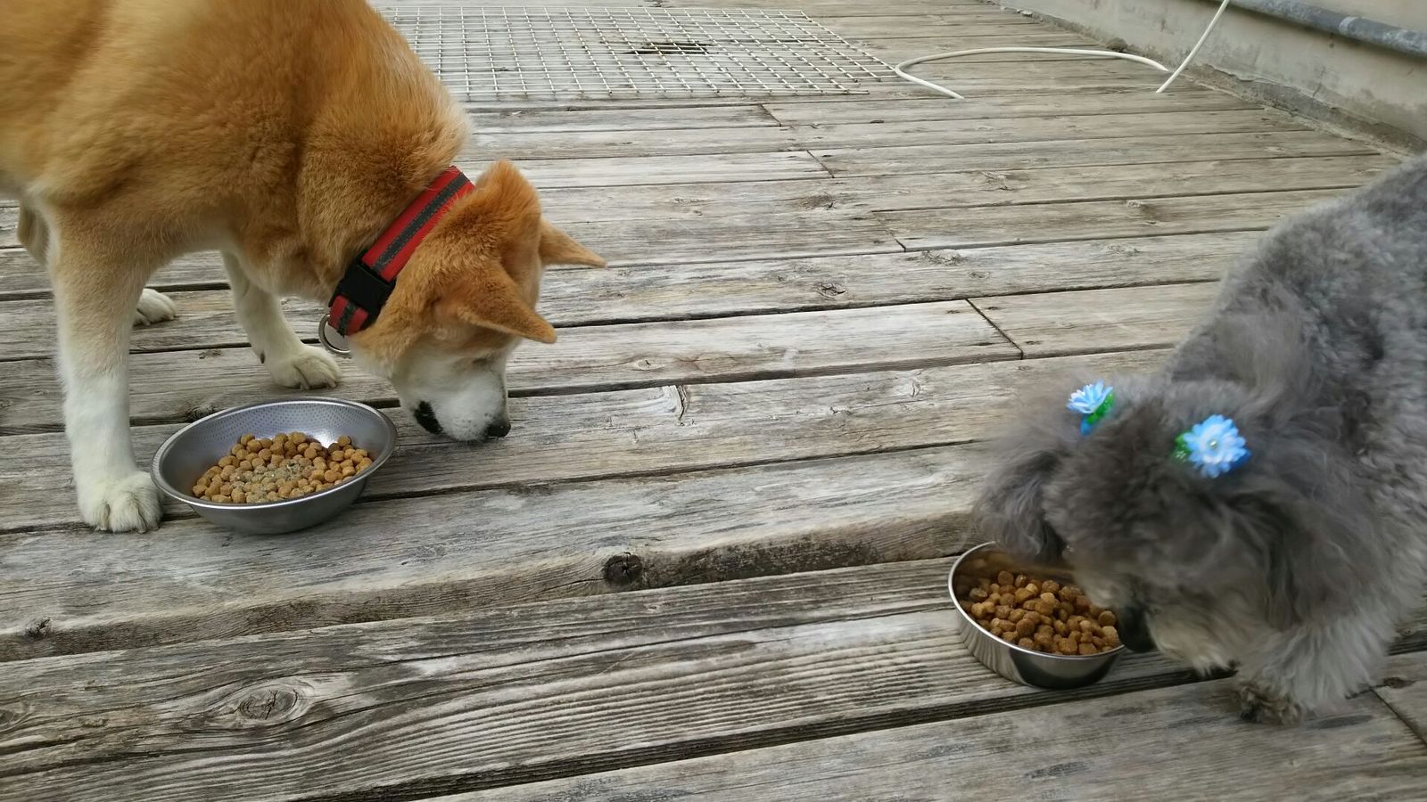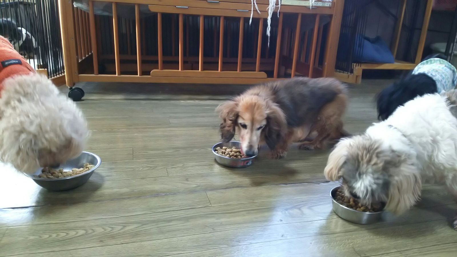 生涯お預かりダックスロッキー君、柴犬凛ちゃんしっかり完食しました。